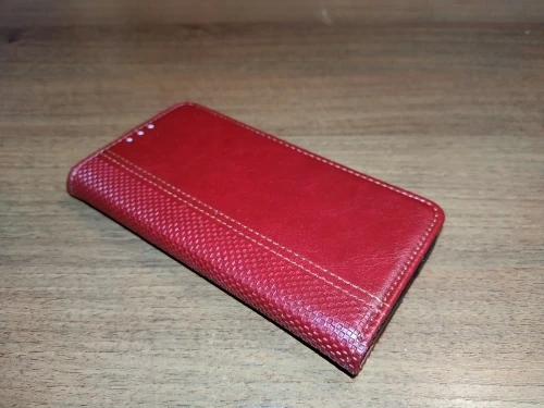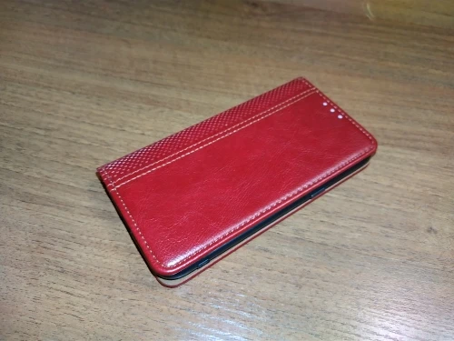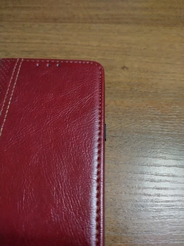 Хороший чехольчик. Только он более бордовый чем красный... Запах есть небольшой,надеюсь проветриется. Магнитик держит вродебы нормально.