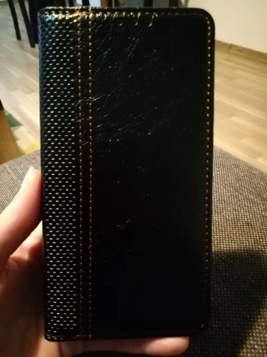 Добротный, качественный чехол из хороших материалов. Везде прошит и не развалится, как предыдущий клеёный. Материал на внутренней стороне напоминает замшу. Куплен жене, она довольна! Из особенностей: - Чехол оказался поуже предыдущего, закрывается вровень с ободком-бампером, а кнопка питания даже выглядывает. Сам бампер чёрный - неожиданно, т.к. на старом чехле он был прозрачный (сам телефон золотистый). Доехал в Екатеринбург за 10 дней, продавцу спасибо!