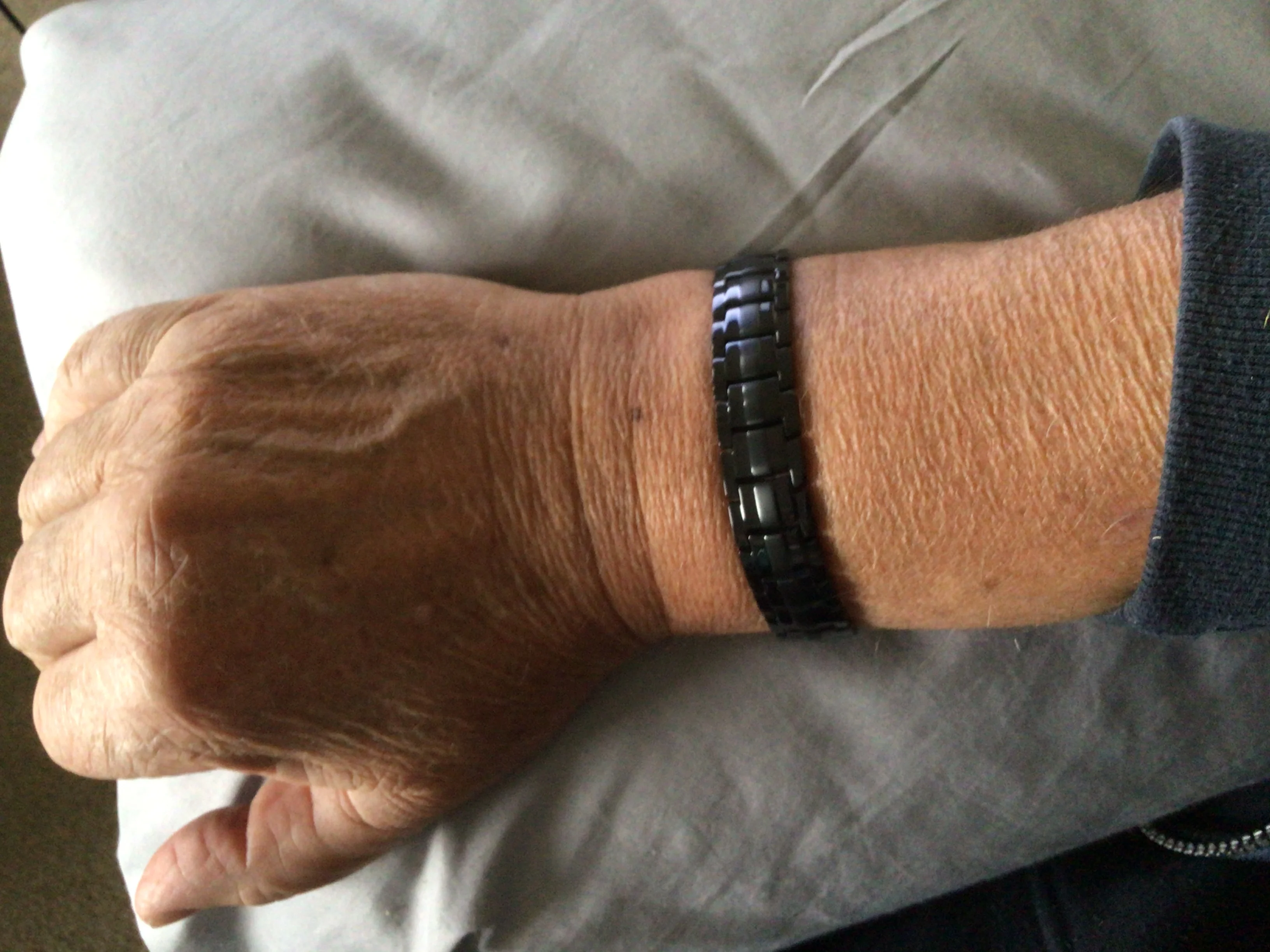 Браслет пришел в течение 16 дней-быстро. Красиво выглядит. Ширина 2 см. Надеюсь, что это помогает с уровнями энергии.