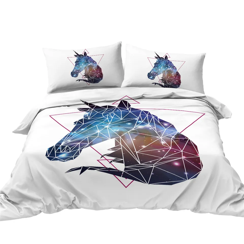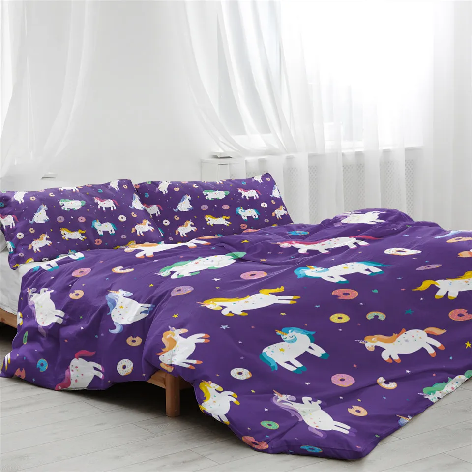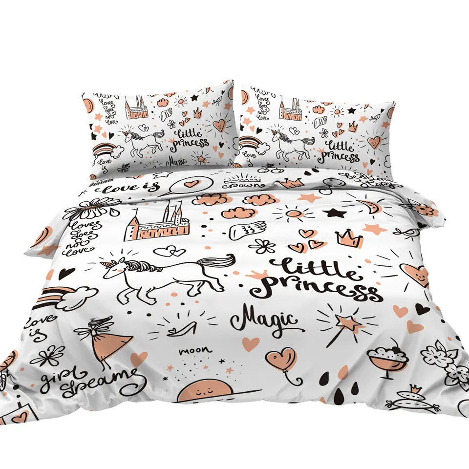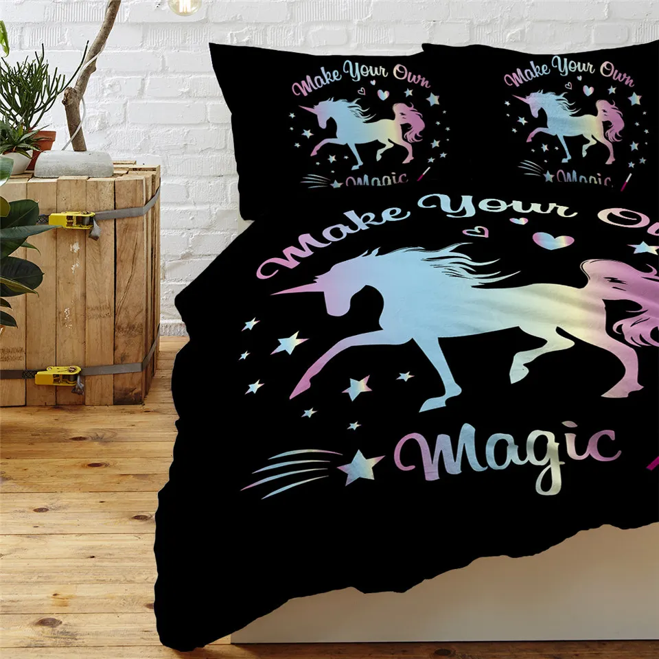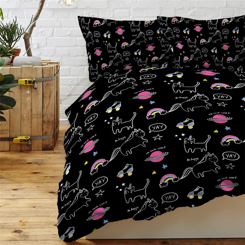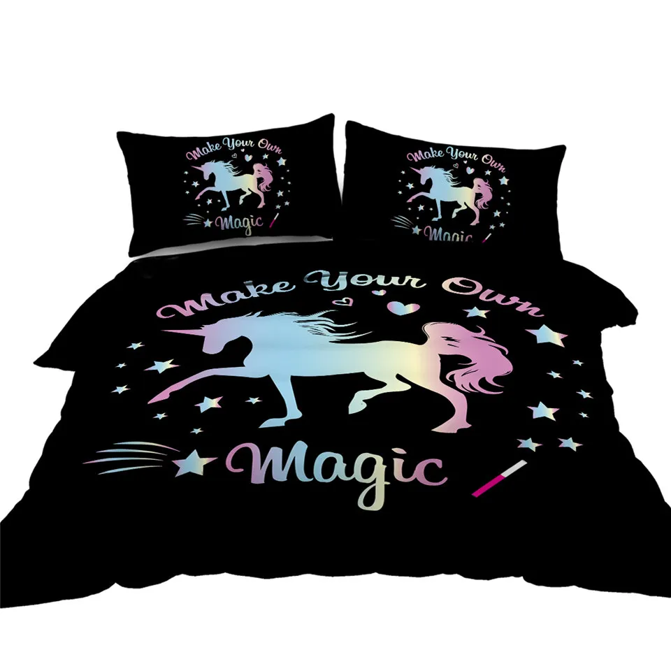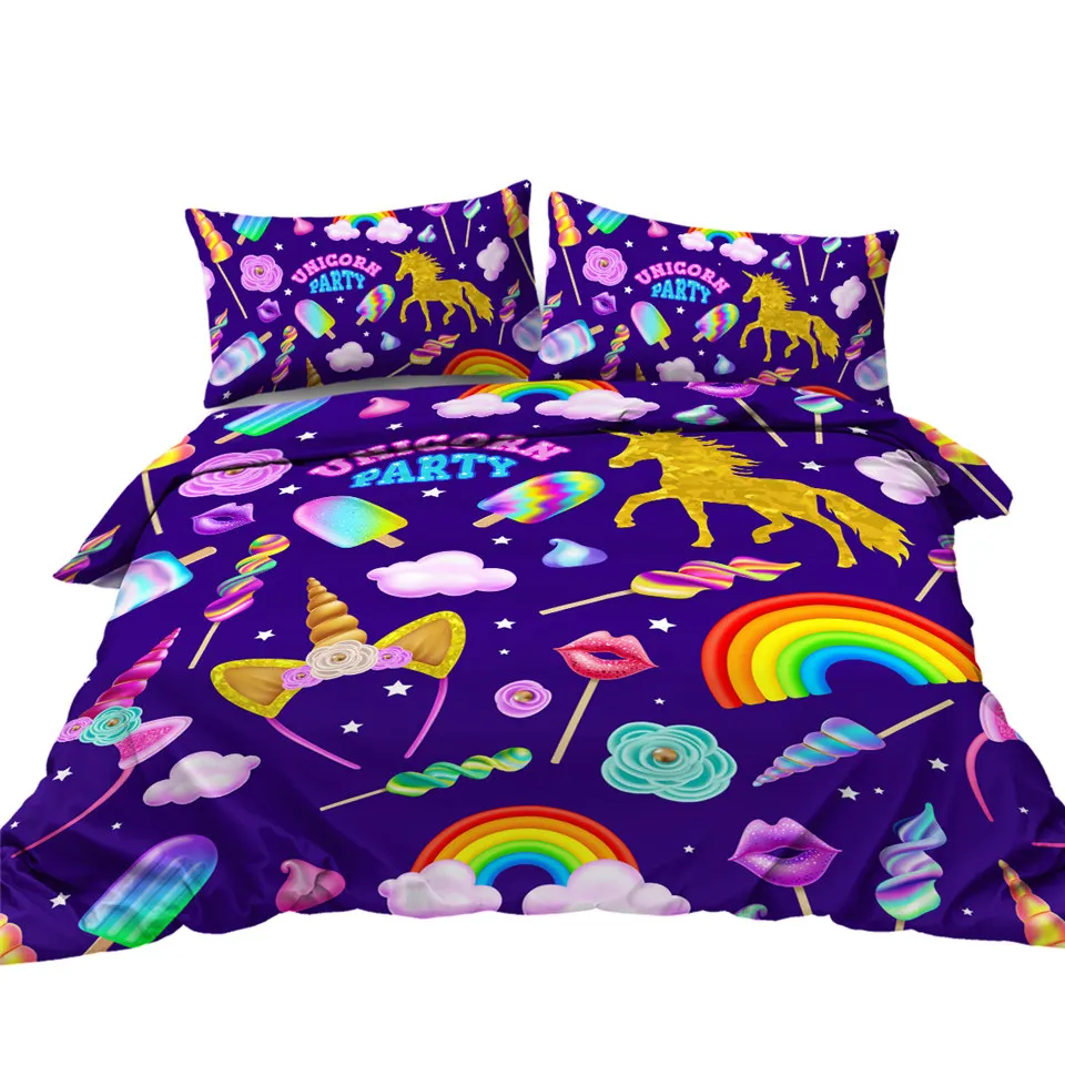 Детский комплект постельного белья из 3 предметов, пододеяльник с разноцветными радужными покрывалами, Корона и неосветильник свет, постельное белье с изображением единорога