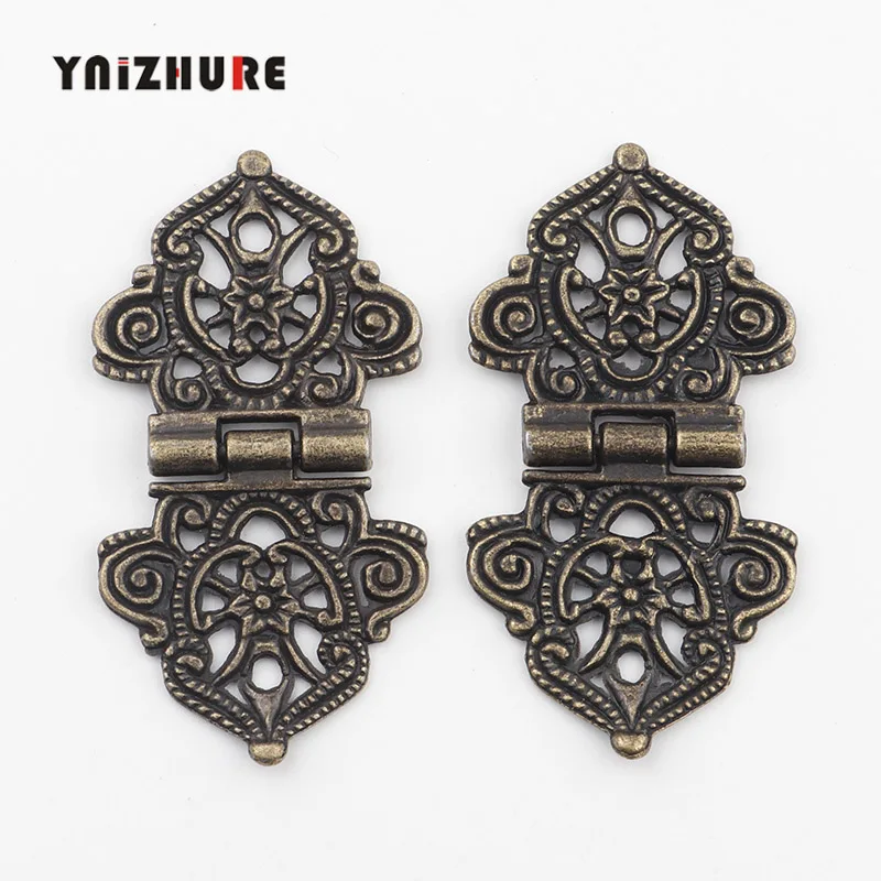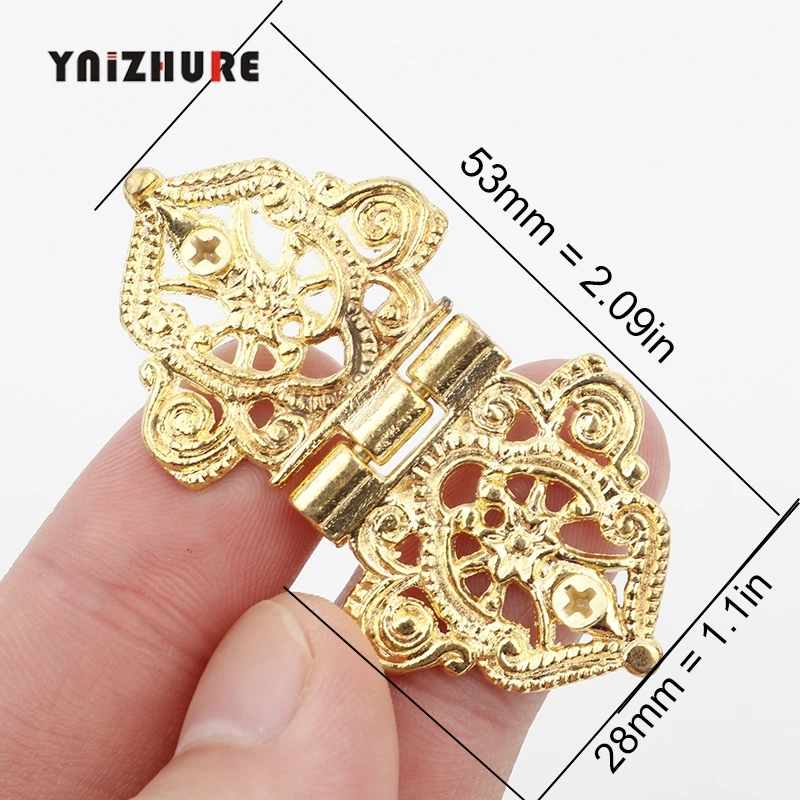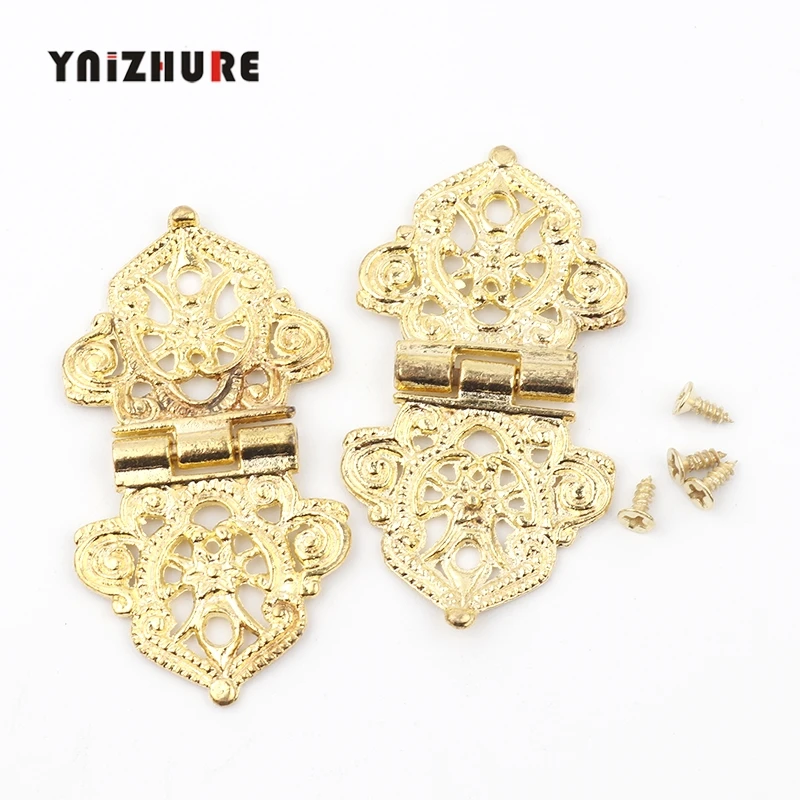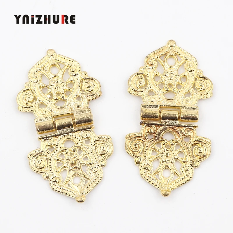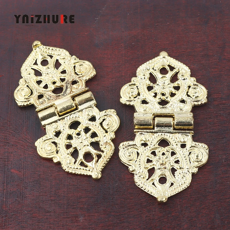 Винтаж Сплав Полые 2 шт. 28*53 мм с золотым цветком шарнир китайский фурнитура для мебели, металлическая петли шкаф дверные петли для DIY