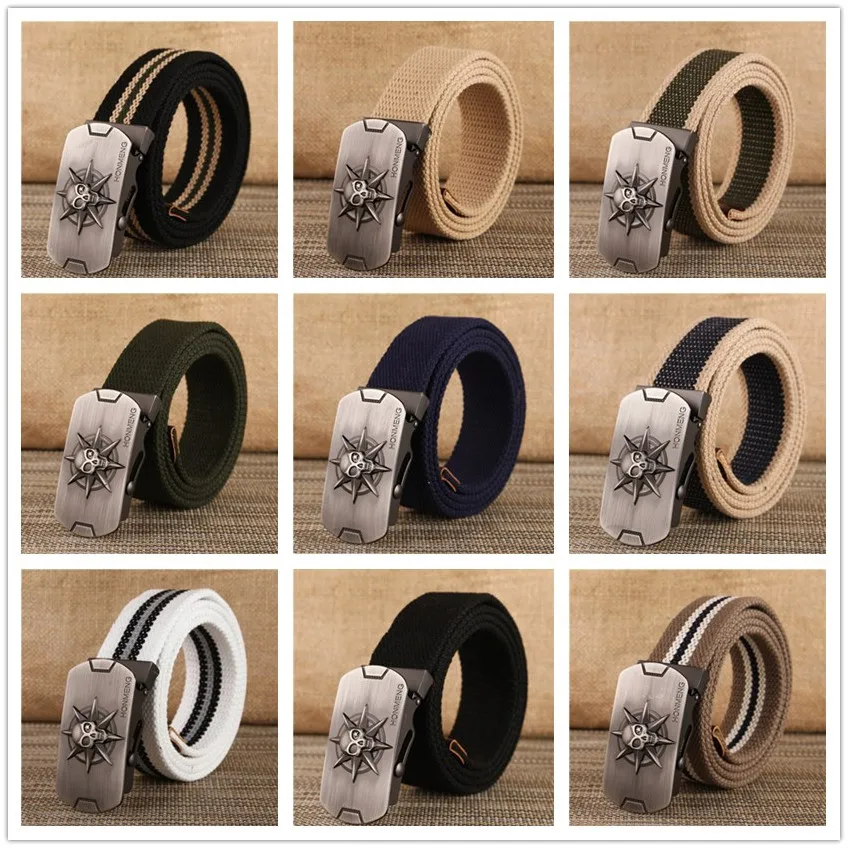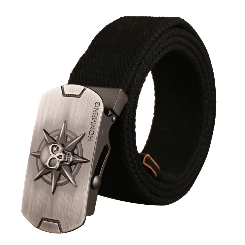 Повседневный тканевый ремень молодежный Мужской ремень для джинсов с гладкой пряжкой из сплава с черепом новый дизайн модные ремни наружный мужской пояс