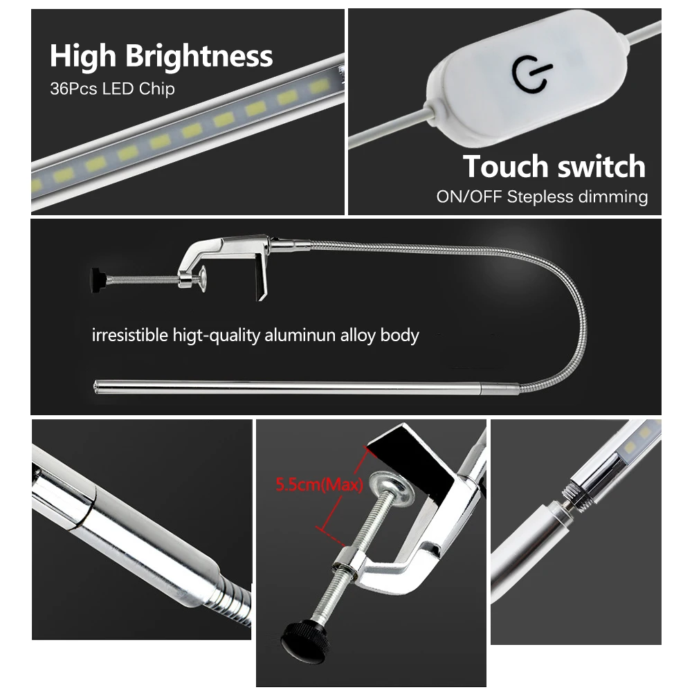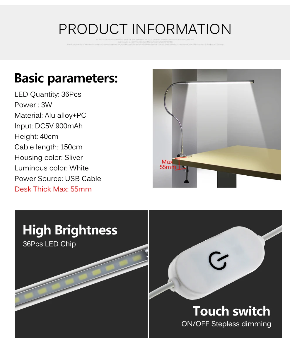 Настольная лампа с длинными ручками 48 Светодиодный s с зажимом, офисный светодиодный настольный светильник, USB гибкий, защита глаз, лампы для чтения для работы и учебы