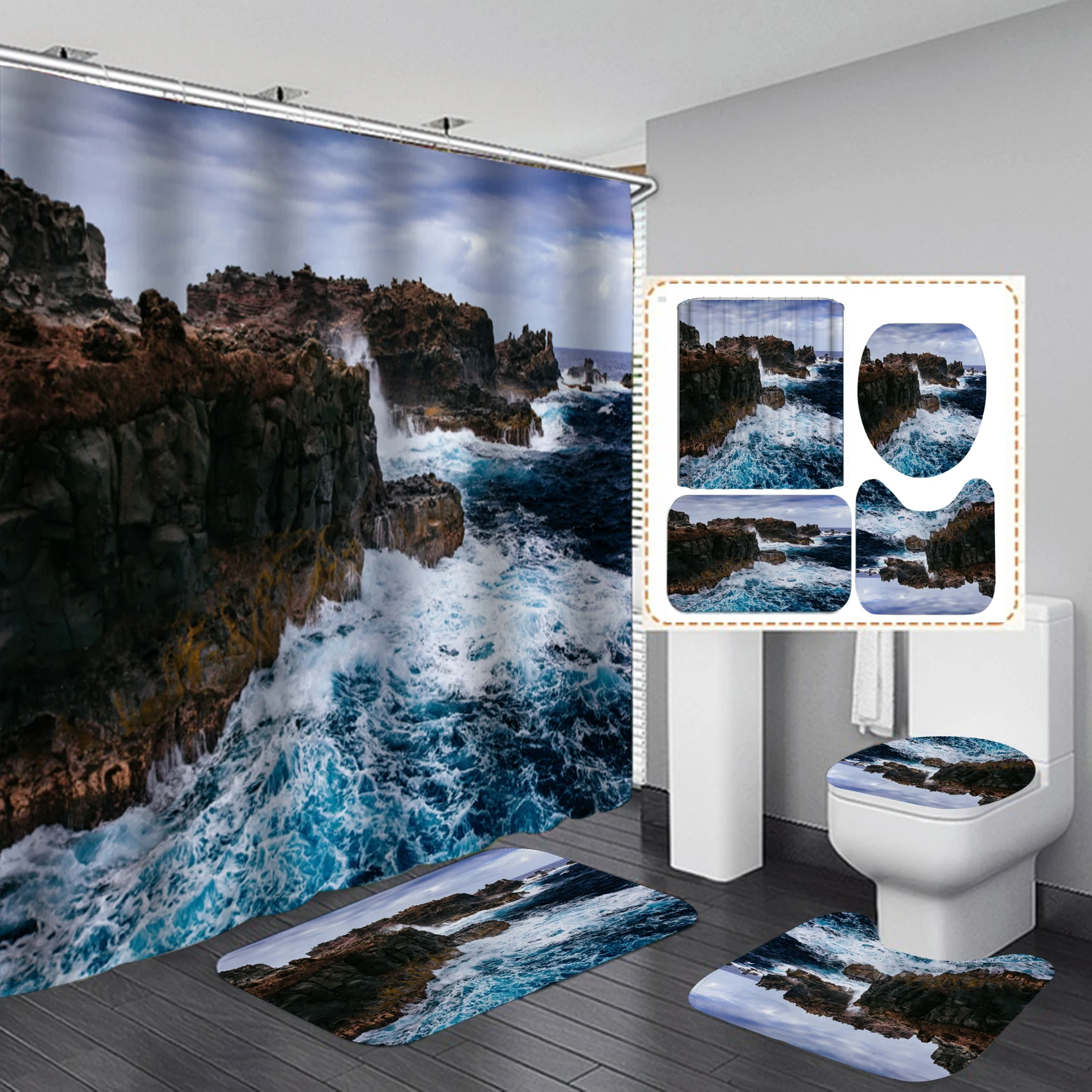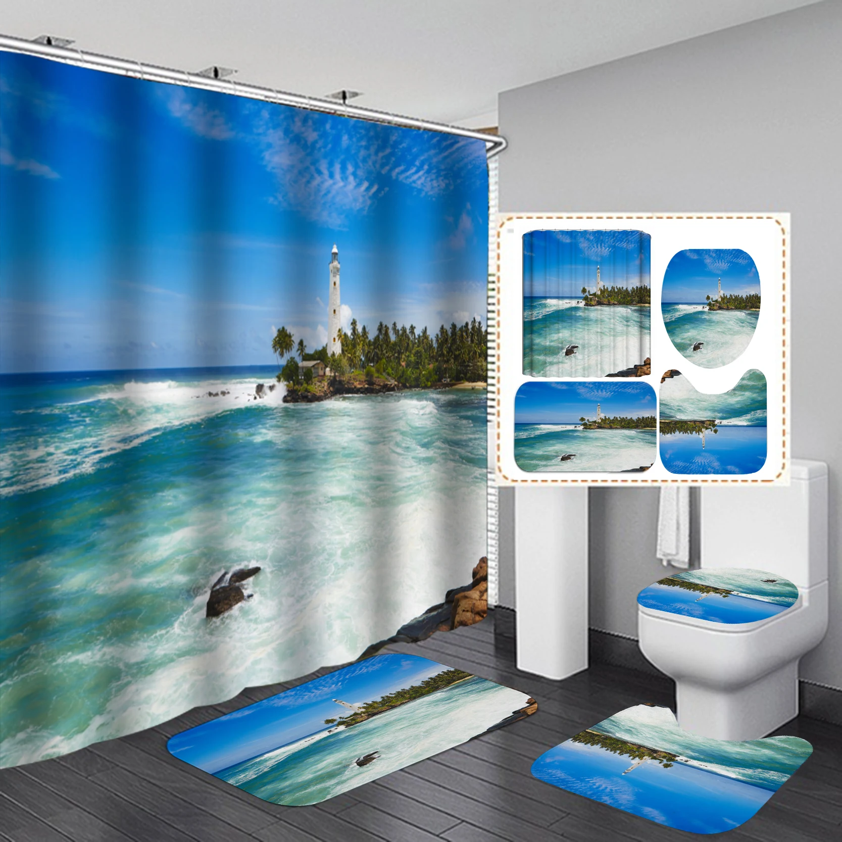 Занавеска для душа с принтом прибрежного пляжа, коврик, крышка для унитаза, набор ковриков для ванной, шторы с крючками для ванной занавеска с крючками