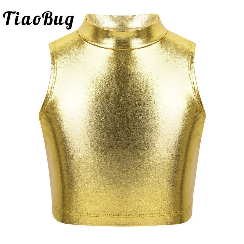 Детская водолазка без рукавов TiaoBug для подростков, металлические топы для балета и гимнастики, детская одежда для джазовых представлений и танцев