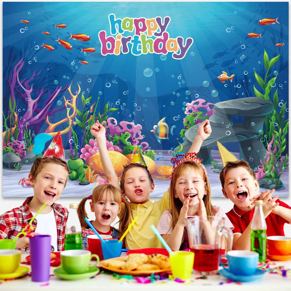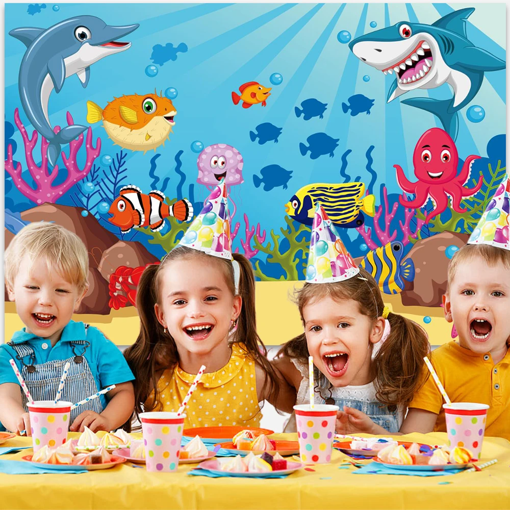 Фон для фотосъемки с изображением морского моря акулы рыбок аквариума дня рождения
