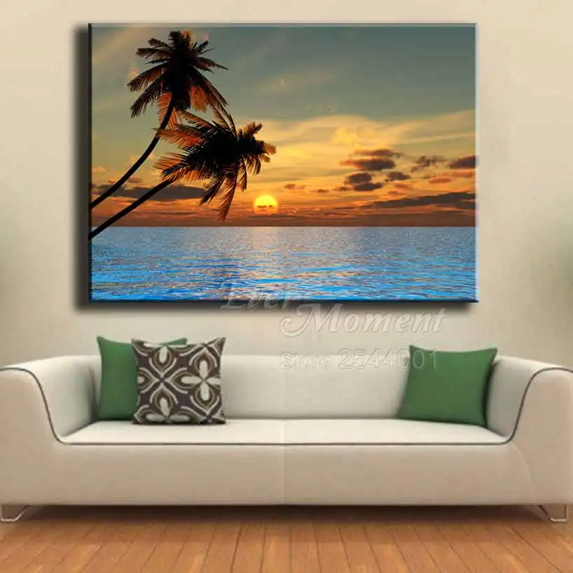 Алмазная мозаика с кокосовым деревом и закатом, ASF1099