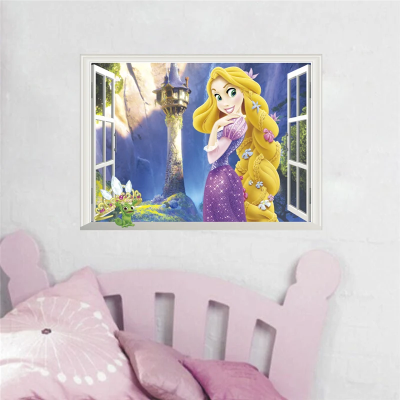 Рапунцель принцесса 3d наклейки на стену окна для украшения дома 3d окно фотообои с героями аниме Искусство Diy Детская комната наклейки на стену