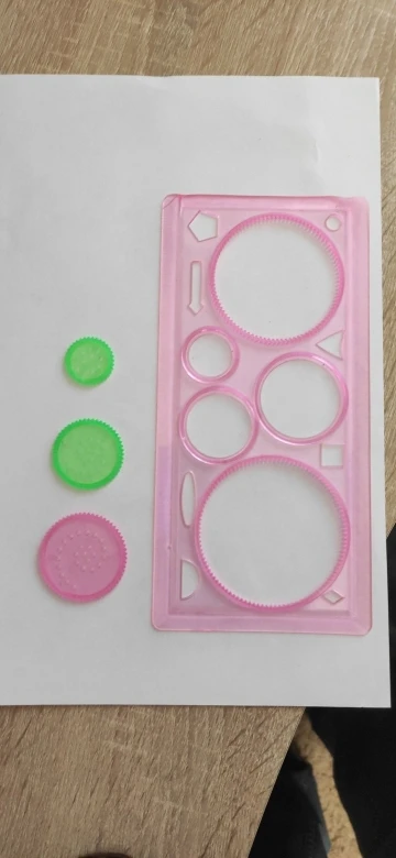 По картинке непонятно, я подумал, что это дополнительные элементы к другим похожим товарам. В итоге это такая же линейка с шестерёнчатыми отверстиями и спец. вставками чтобы рисовать. Кроме того, отвратительная упаковка для таких хрупких вещей, товар пришел уже в не товарном виде. С продавцом пообщаться не удалось, но впечатления, что он чудак на букву М.