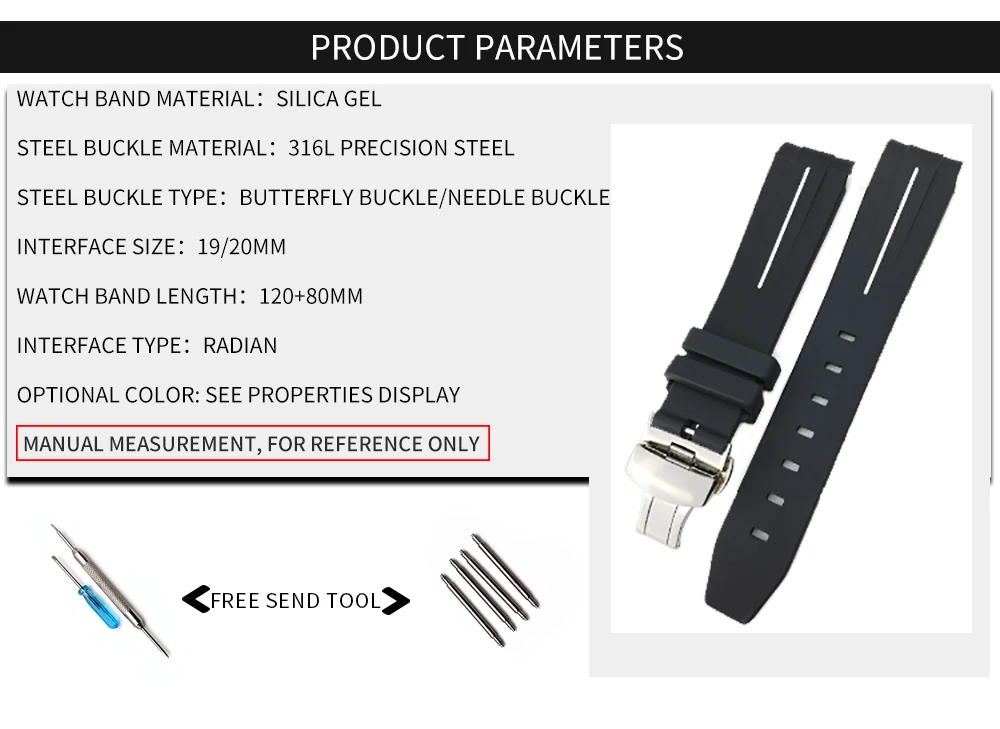 Ремешок силиконовый водонепроницаемый для часов, резиновый браслет ...