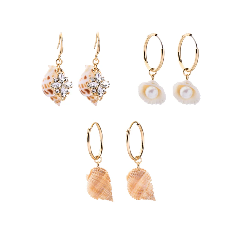 Item typeUnique Three-type Conch Acrylic Pearl Crystal Shell Drop Earrings
