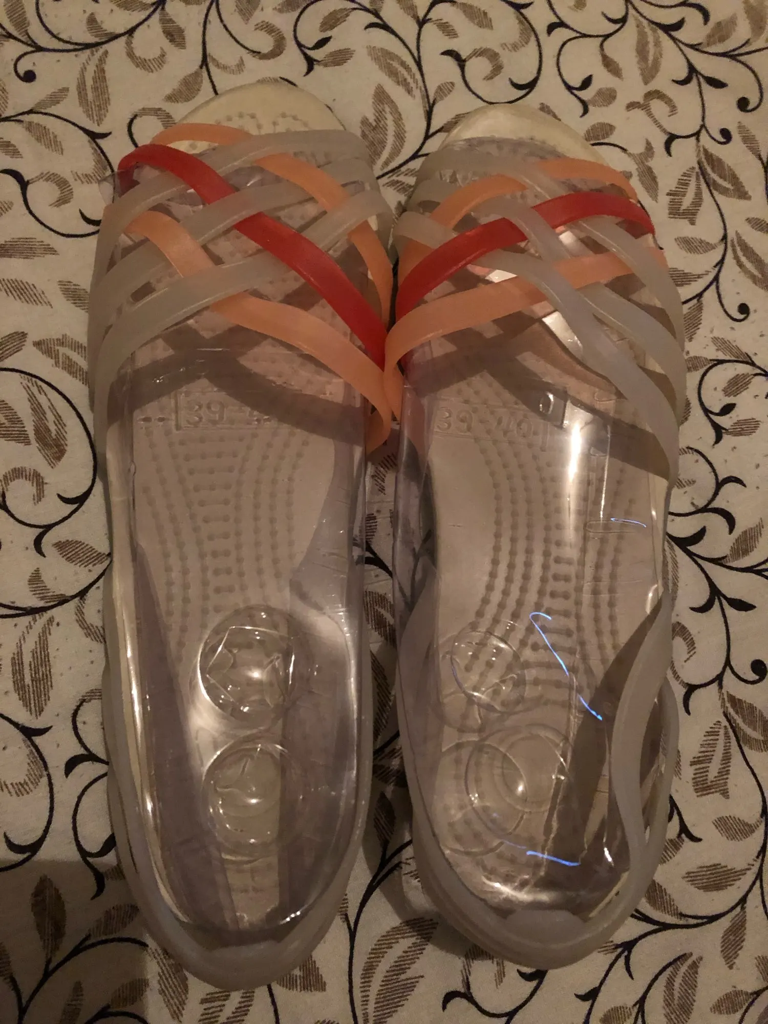 Пришли довольно быстро,дней 20!Идеально подошли по размеру ,у меня 37,5 -38 размер ,а заказала 39.Без брака,хорошо упакованы ,такие мягкие ,удобные .Пока ещё не носила на улицу ,покупала для пляжа .Пока очень довольна ,продавца рекомендую !!!