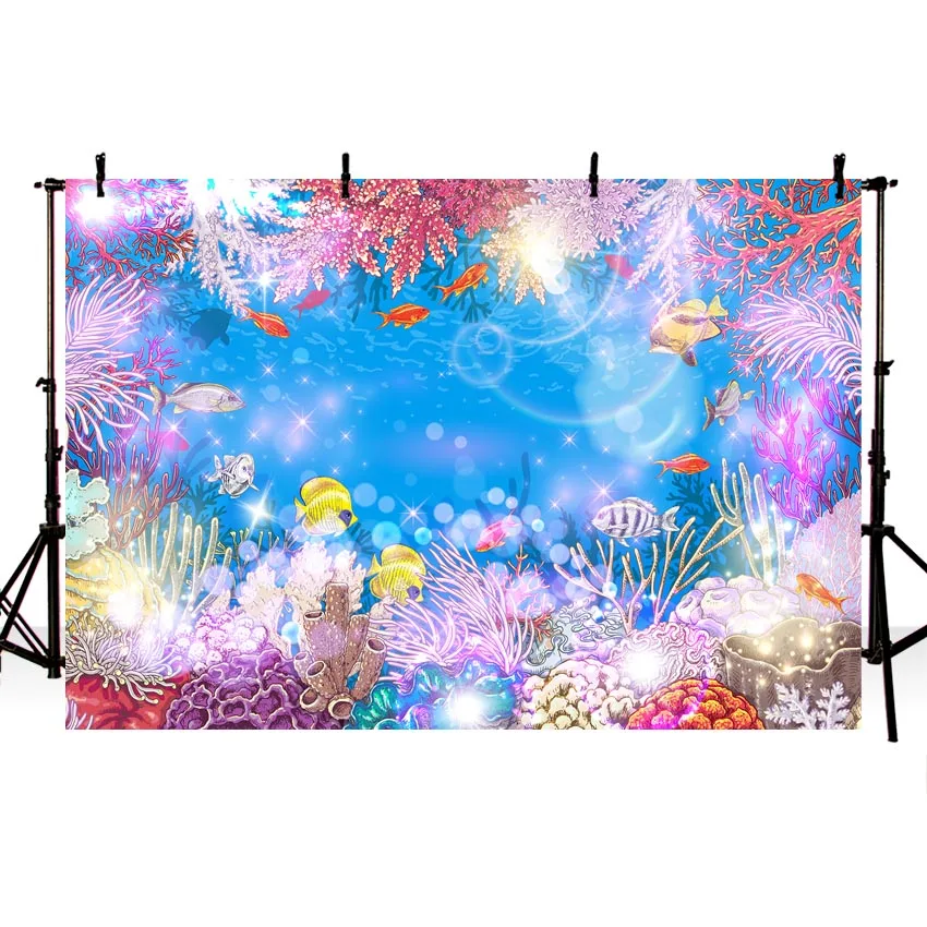 Декорационные задники с рисунком маленькая русалочка под на морском дне c автоматическим Caslte кораллы Ариэль принцесса фон для фотосъемки с изображением маленьких вечерние фон для фотосъемки на день рождения
