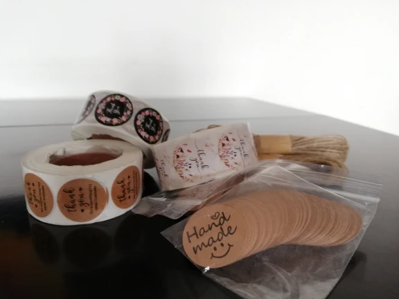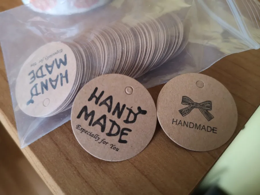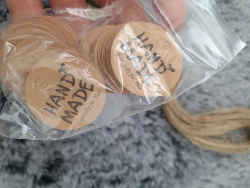 Очень милые этикетки. Все как на фото. Модно привязывать просто вкладывать в пакет с изделием. Пришли достаточно быстро. Рекомендую.