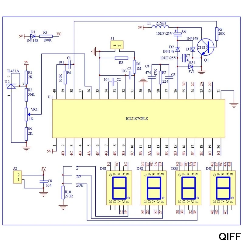 Принцип цепи:AMM-TE Амперметр в основном состоит из ICL7107, цепи питания, эталонного источника напряжения, схемы ввода и схемы отображения.1.ICL7107-это интегральный чип преобразования типа a/D с выходом BCD, его внутренний включает в себя; Линейное усиление, аналоговый переключатель, колебание, вождение дисплея и т. д.2. Цепь питания делится на положительную мощность и отрицательную мощность. Положительная мощность вводится при помощи фильтрации J2,C8. Отрицательный состоит из R8, Q1, L1, C6, C7, D2, D3 и ZD1, которые генерируют-напряжение 5 В, входное чипом 26th pin.3. Исходный источник напряжения состоит из R1, R2, VR1, R9, U2. 36-pin Является эталонным входным контактом напряжения. Отрегулируйте потенциометр VR1, чтобы напряжение 36 контактов составляло 100 мВ.4. Входная схема состоит из J1, R5, R6 и C3. Когда ток измеренной цепи проходит через R5, он генерирует напряжение на R5. Это напряжение будет входом к чипу 31-pin через ограничение тока R6 и будет обработано, C3-конденсатор фильтрации входного напряжения.5. Схема отображения состоит из DS1-DS4, D1, D4, 4 цифровых трубок может быть погружена непосредственно чипом. R10-это ограничение по току сопротивления DS1-DS3 цифровых труб с десятичными точками.Отладка готового продукта:1. После подключения к DC 5 В (Пожалуйста, обратите внимание на полярность), цифровая трубка будет отображаться-.000 или. 000, это нормально.2. Применение мультиметр для измерения напряжения между чип 36-контактный и 35-pin, а также регулировать VR1 потенциометр дайте ему быть 100mV.Контрольное значение напряжения в ключевых точках:1. Чип 1-контактный и 21-контактный: 5V.2. Чип 36-pin и 21-pin: 100 мВ,3. Чип 26-контактный и 21-контактный: −5 в.Спецификация:Материал: PCB + металл + пластикТип: цифровой комплект амперметраРазмер панели: 79x44 мм/3,11x1,73 дюймаКрепление Размеры: 71x39 мм/2,8 x 1.53inКоличество: 1 шт.Параметры электроэнергии:Рабочее напряжение: 5 В постоянного токаРабочий ток: 35 мАТочность: ± 1 мАДиапазон измерения: 0 - 2AИндикация диапазона: дисплей Primacy 1/-1Цвет дисплея: красныйКоличество: 1 комплектПримечание:Из-за разницы между различными мониторами изображение может не отражать фактический цвет изделия. Спасибо!Посылка включает в себя:1 комплект x Цифровой комплект амперметра