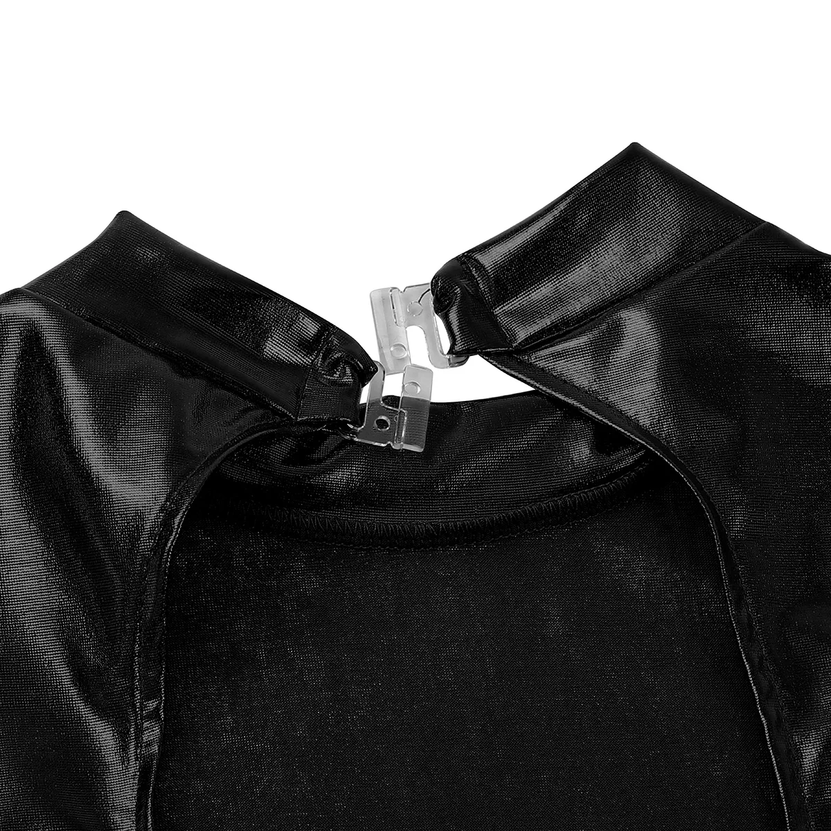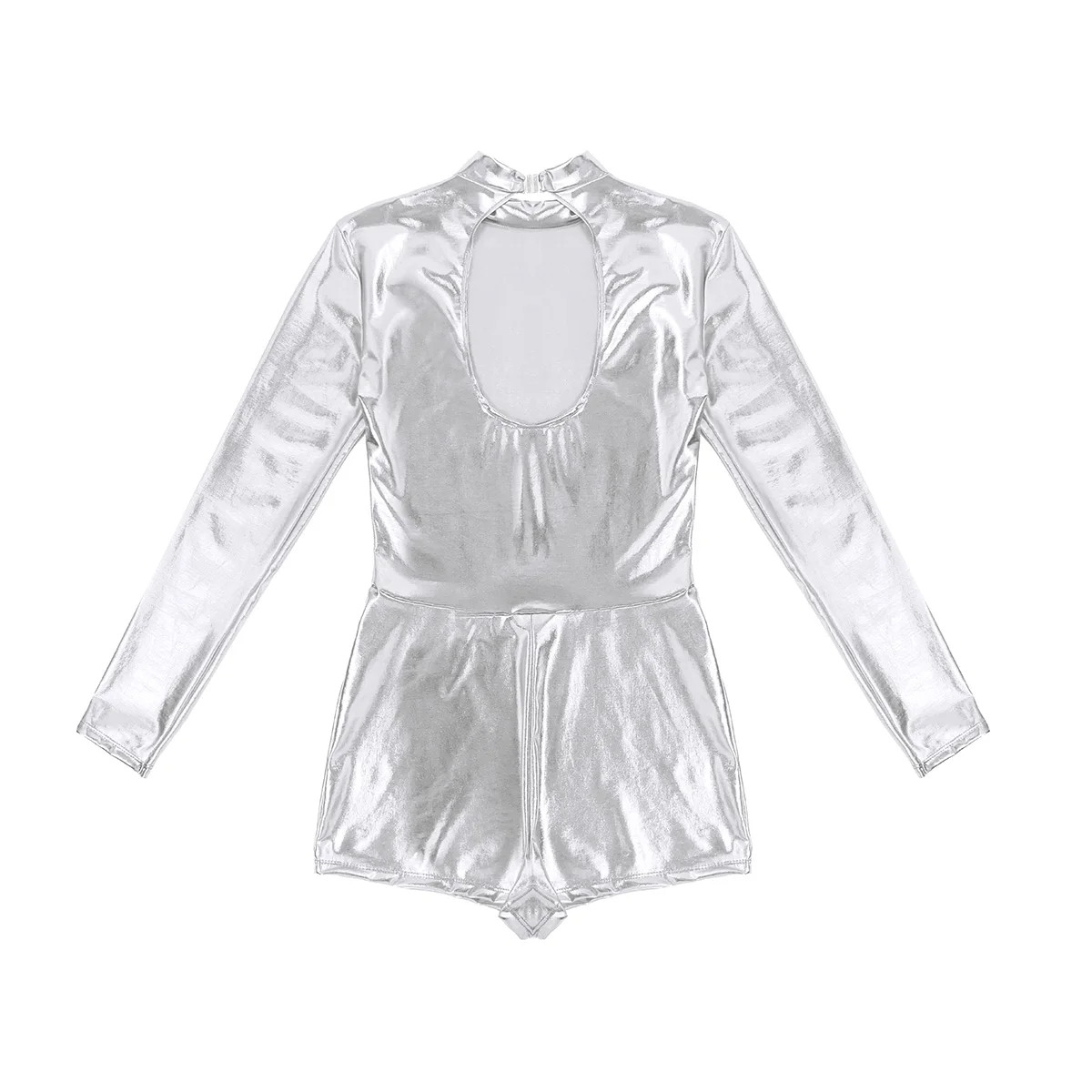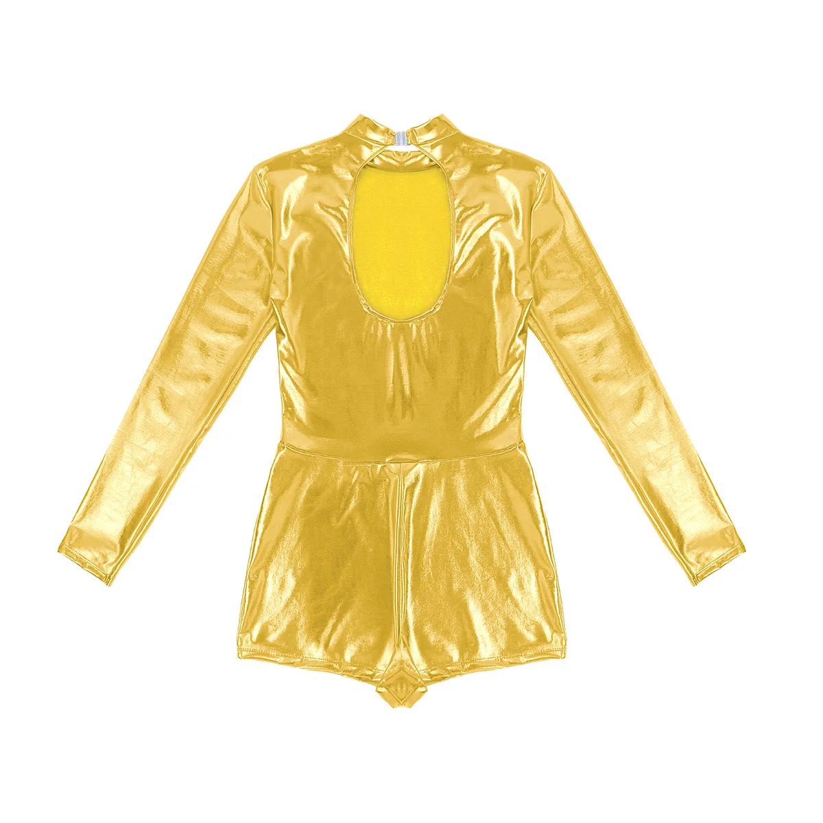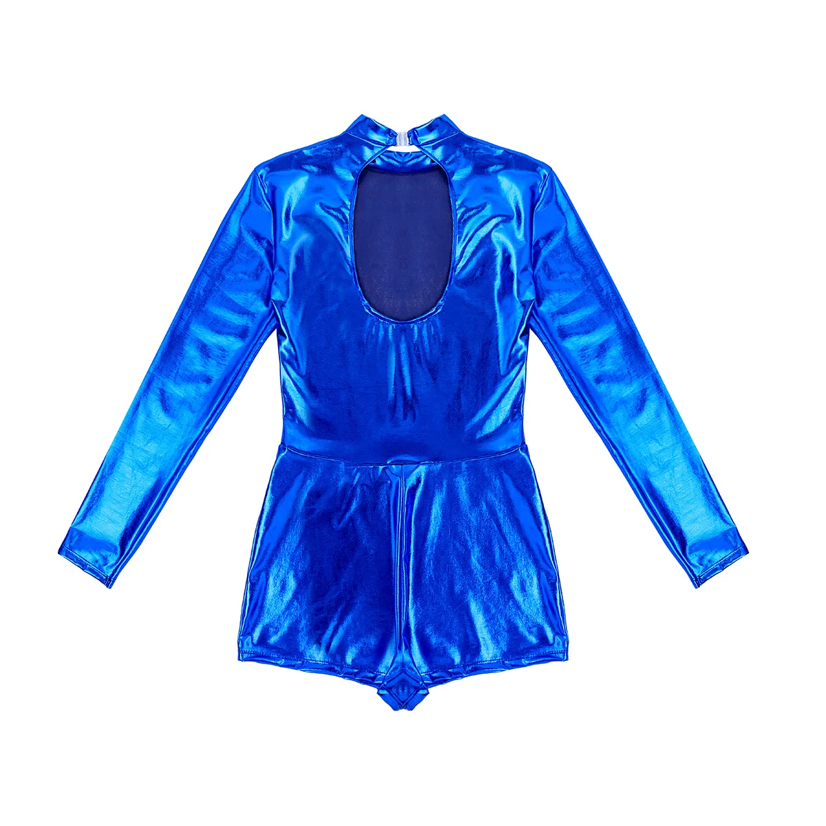 TiaoBug Блестящий металлический гимнастический купальник с длинными рукавами, женский костюм для фигурного катания, балетный костюм для взрослых, боди