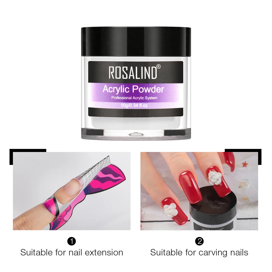 Акриловая пудра ROSALIND для наращивания ногтей, полигель для ногтей, порошок для окунания кристаллами, резьба по Арту ногтей, украшение для маникюра
