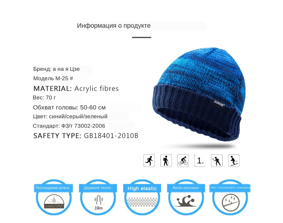 AONIJIE M24 M25 шапка для сноубординга зимние вязаные шапки зимние ветрозащитные толстые теплые лыжные шапки для бега уличные спортивные