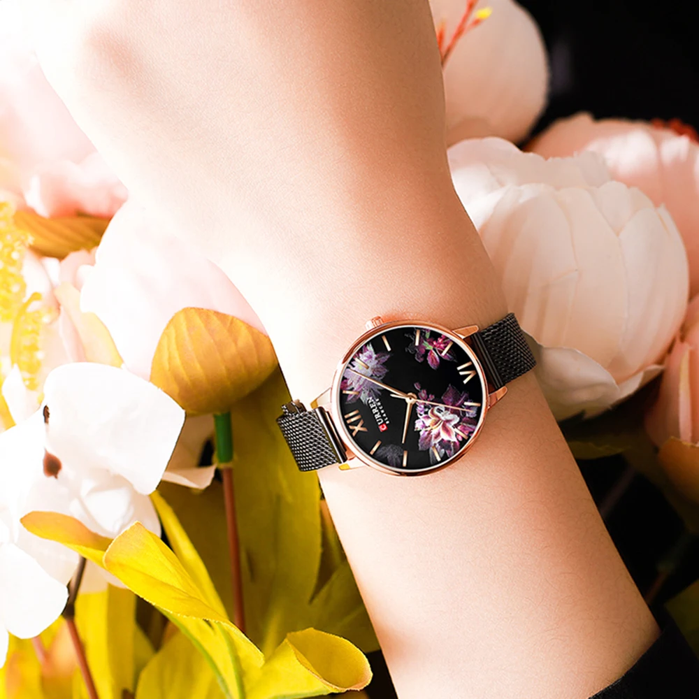 CURREN новые женские часы с цветочным орнаментом женские наручные часы из нержавеющей стали женские модные кварцевые часы reloj mujer повседневные