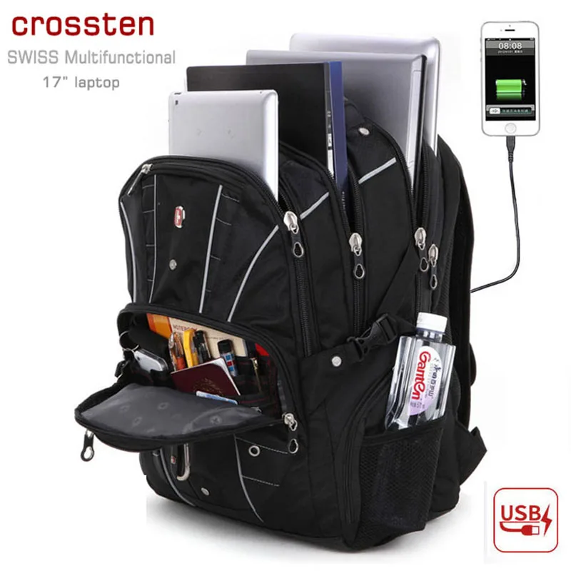 Швейцарский Многофункциональный рюкзак для ноутбука 17 дюймов с USB-зарядкой, Вместительная дорожная сумка, водонепроницаемый школьный ранец с защитой от кражи и навесным замком