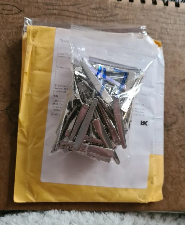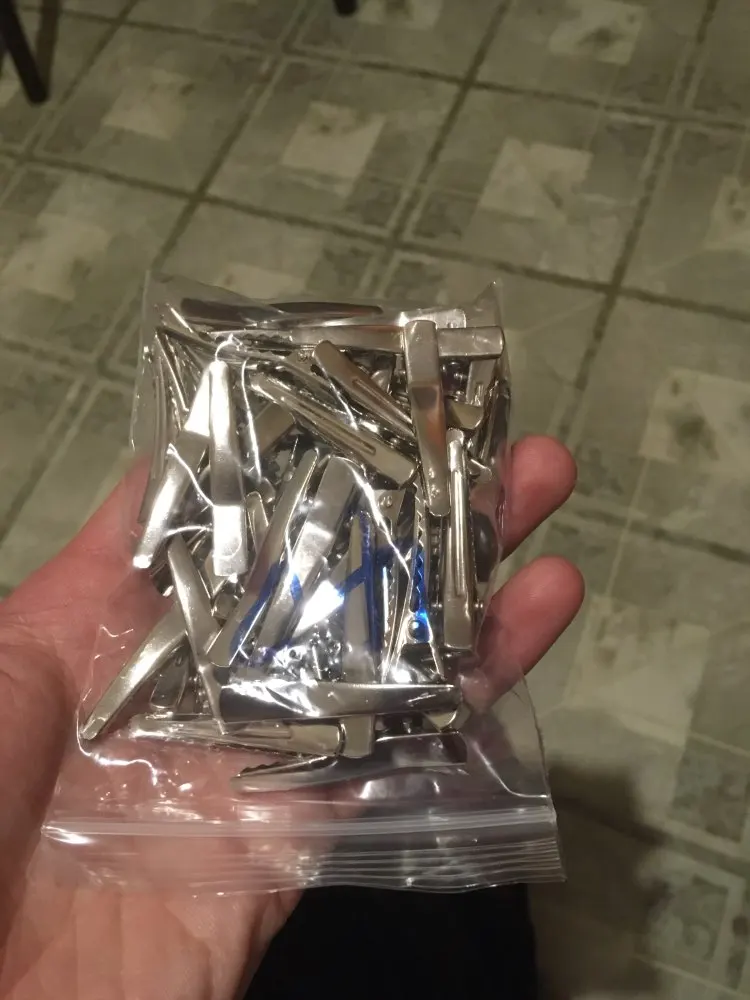 спасибо пришли все 50 шт. 14 идеальны. 7 шт не сходятся . застежка на зубчиках виснит . 21 штучка цепляется за зубчики, все в правую сторону. как это исравить не знаю.заколки для работы. боюсь что бы клиентам не резали волосы. в общем нормально, попробую исправить. зубчики поотодвигать может получится. вид правдо будет не тот . ну что поделать . спасибо и за это