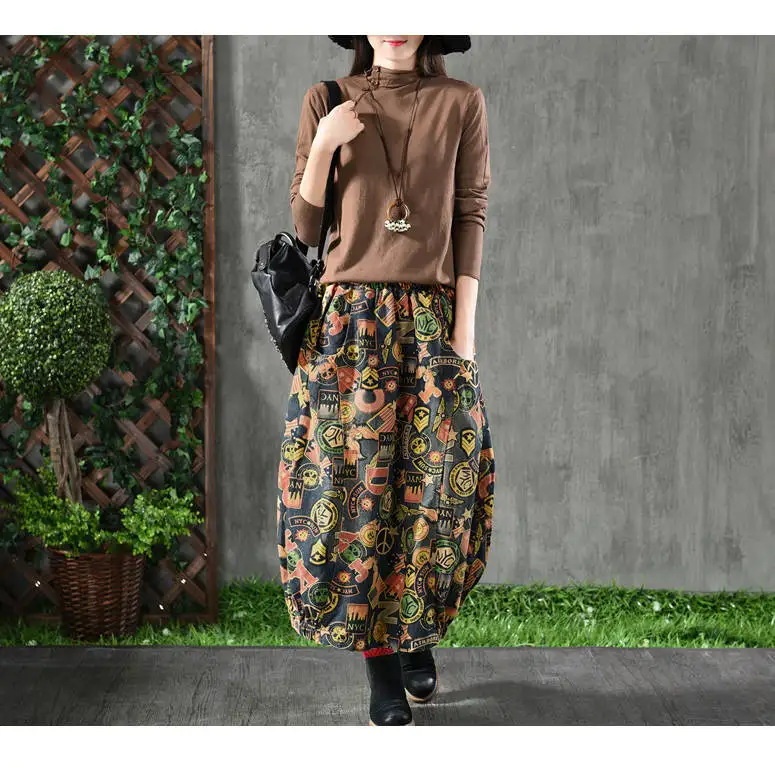 Женская джинсовая юбка с высокой талией F je, длинная свободная юбка из размера плюс хлопка с винтажным принтом, Весна 100%