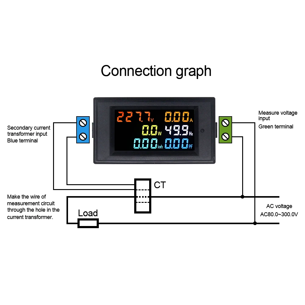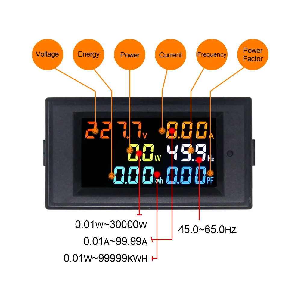 Ток переменного тока: 0-99,99a переменного тока, минимальное разрешение-0,01a. Дисплей 100,0a, когда ток превышает 100A