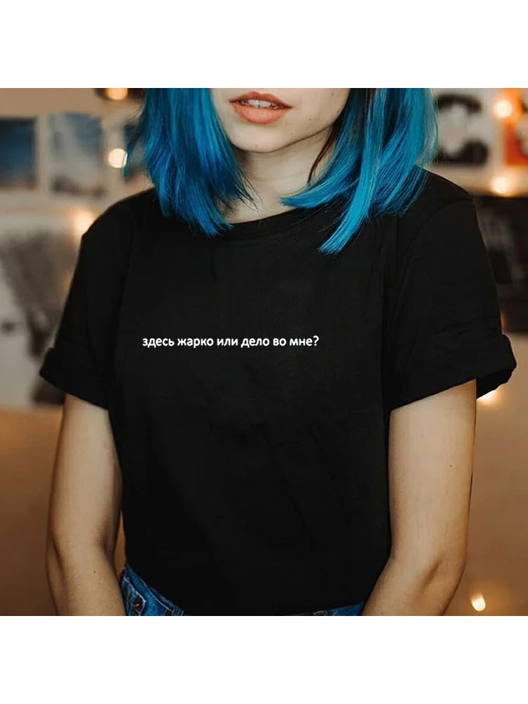Женская летняя футболка с надписью "Is It Hot Here for Is It Me", модная футболка с надписью на русском языке, женская одежда в стиле Харадзюку футболки Tumblr