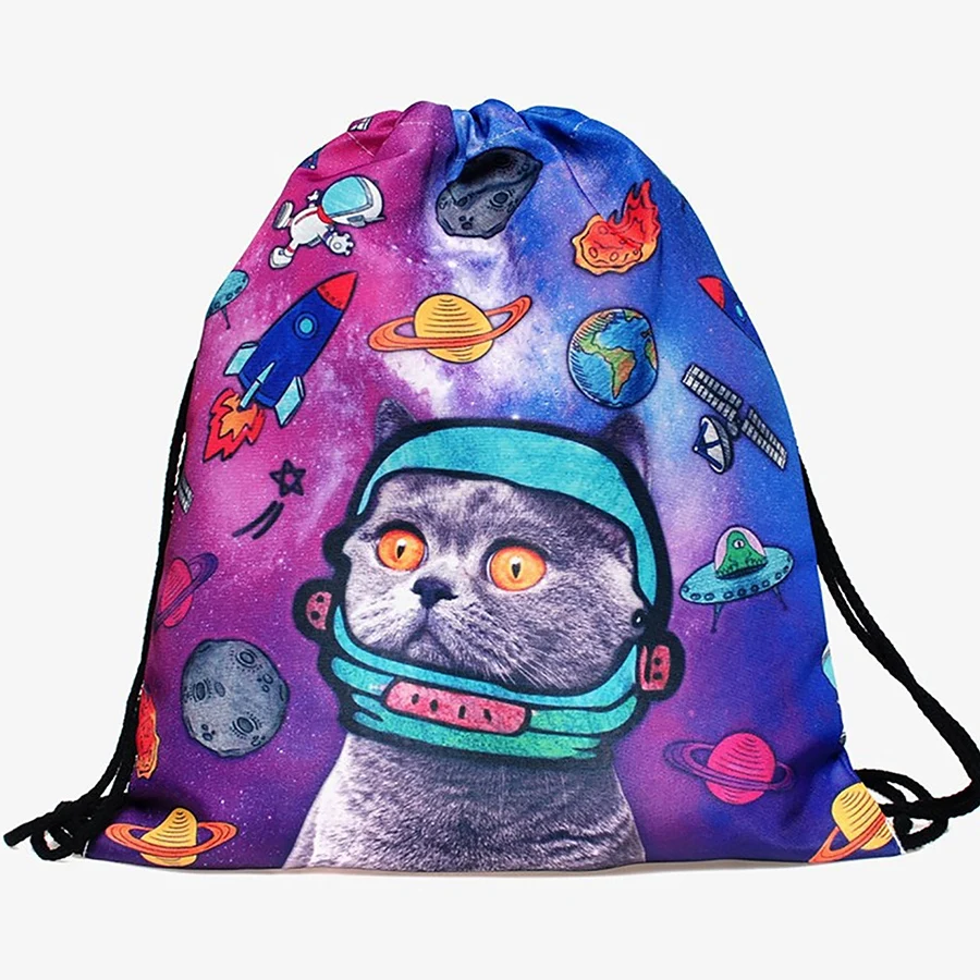 Дорожная Холщовая Сумка на шнурке с 3D принтом, с рисунком черепа, осьминога, собаки, кота, губ, в стиле Харадзюку, рюкзак в готическом стиле школьный ранец