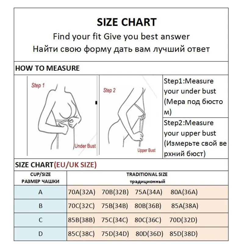 Внутренняя чашка имеет клейкую поверхность, размер чашки B не соответствует Русскому размеру и таблице