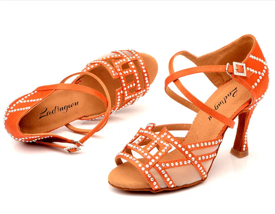 Ladingwuтуфли для латинских танцев; женские блестящие танцевальные туфли со стразами; цвет красный, коричневый; сатиновый бальный танец; обувь с мягкой подошвой
