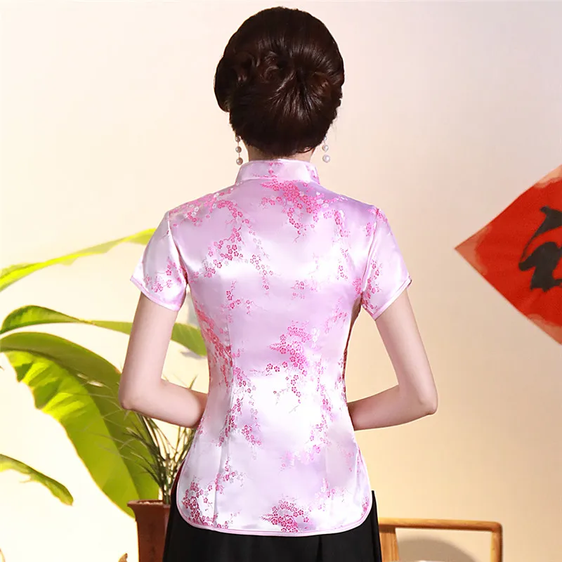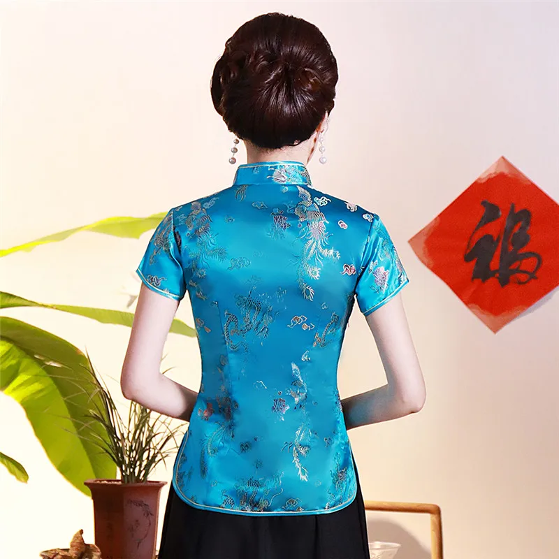 Винтажная Женская атласная блузка с цветами, традиционная китайская летняя пикантная рубашка, новинка, одежда с драконом, топы, новинка, одежда
