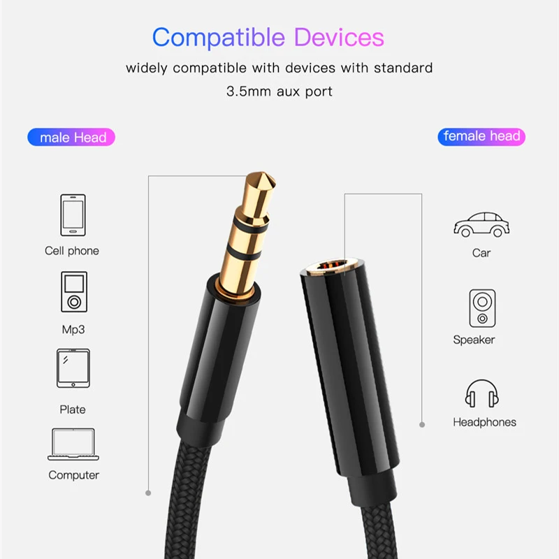 AUX-кабель 3,5 мм, аудиокабель-удлинитель, разъем 0,5 м1 м1,8 м3 м5 м, кабель для наушников Папа-мама для автомобильных наушников, динамиков
