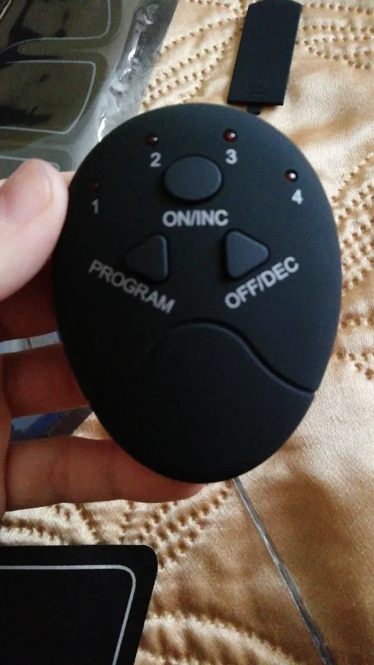 Доставка за месяц. Надо вставить 2 батарейки тип ААА (мизинчики). 4 программы + две сдвоенные, есть регулятор мощности. На всю мышцы скручивает до боли. Накачаться вдрядли получится, а для поддержания в тонусе кубиков под шариком самое оно.