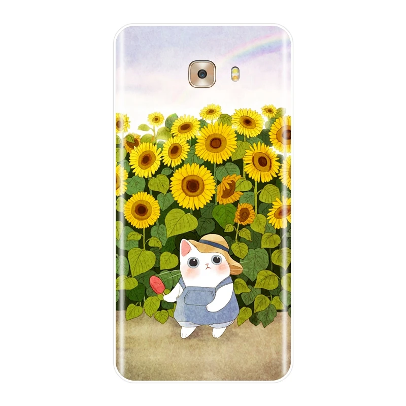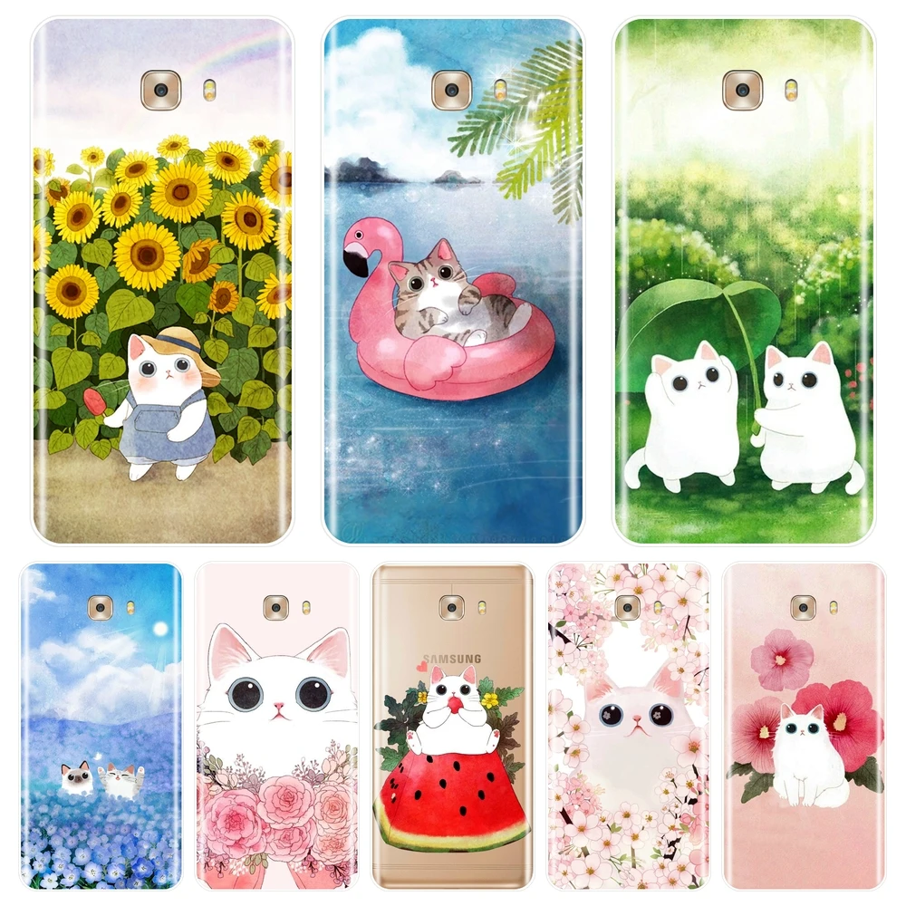 Чехол для Samsung Galaxy C9 C7 C5 Pro, силиконовый мягкий чехол с милым котом, цветком подсолнуха, задняя крышка для Samsung Galaxy C5 C7 C8, чехол для телефона