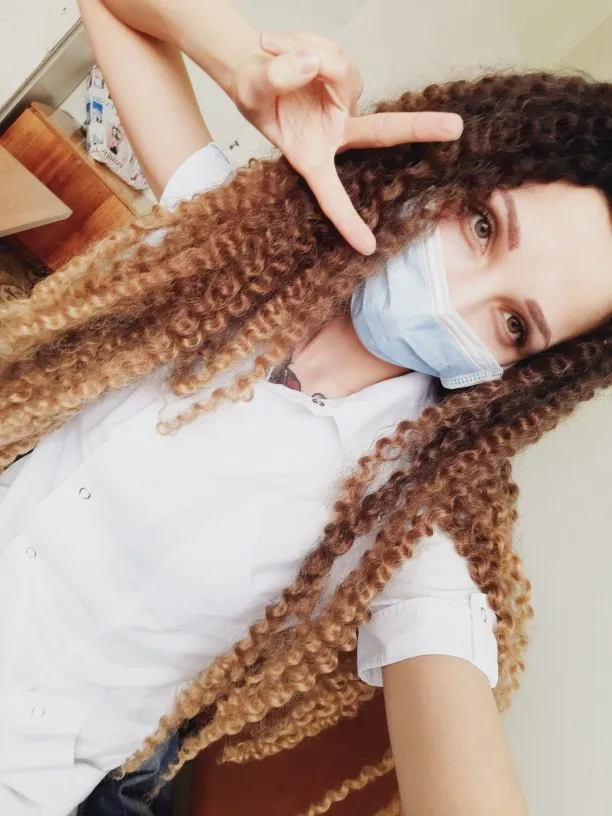 Приходила с ними 3 недели. После 3 дней аккуратной носки, начали ужасно путаться. Начала потихоньку корректировать все ножницами, В конечном итоге все превратилось в единую капну. Брала 6 пачек. На голову хватило 5. В целом, довольна. Но жалко, что материал одноразовый. Товар пришёл быстро