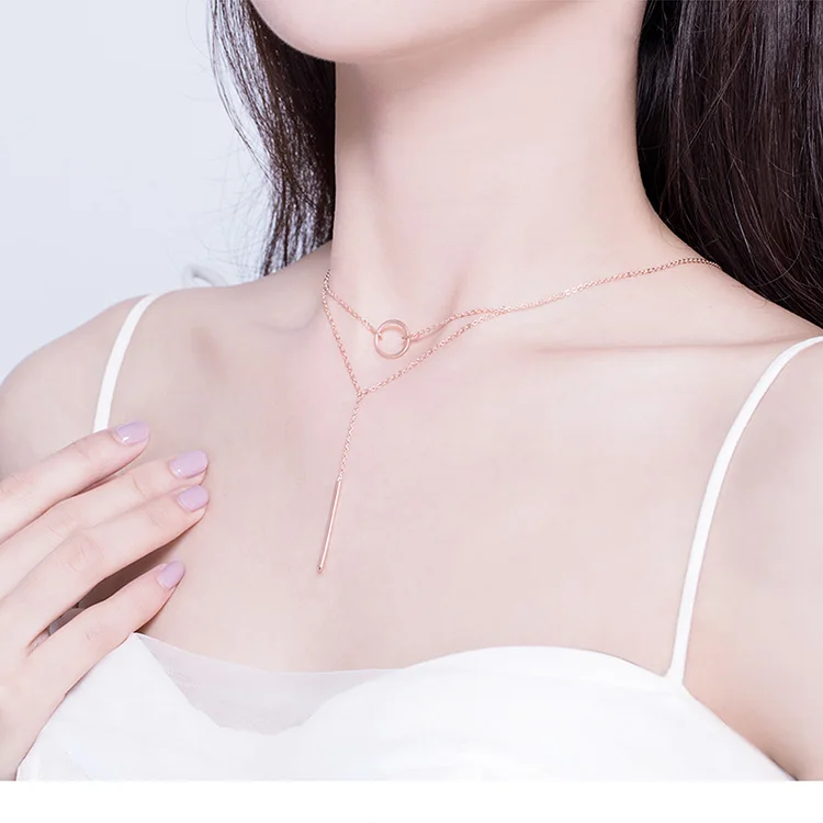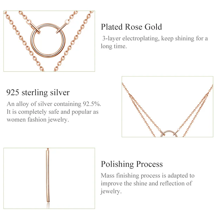 Женский двухслойный геометрический чокер bamoer BSN078, ожерелье из стерлингового серебра 925 пробы, цвет розового золота, бижутерия