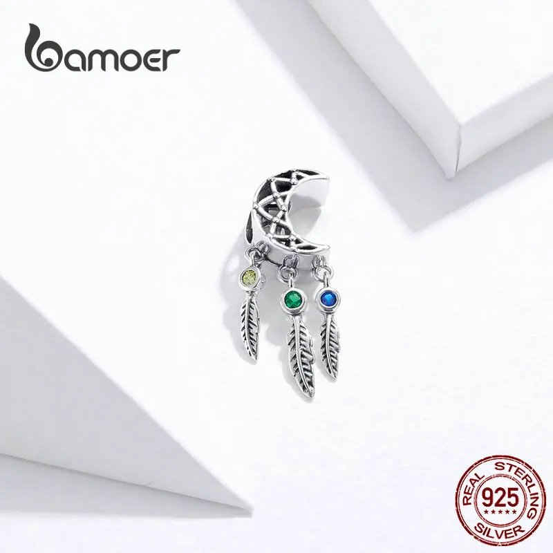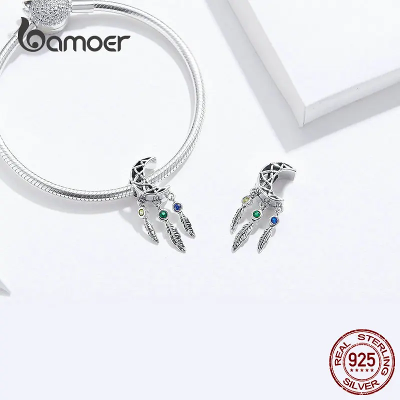 Металлические бусины bamoer в богемном стиле со звездами для изготовления ювелирных изделий, перо, кисточка, подвеска для браслета, серебряный шарм, SCC1232