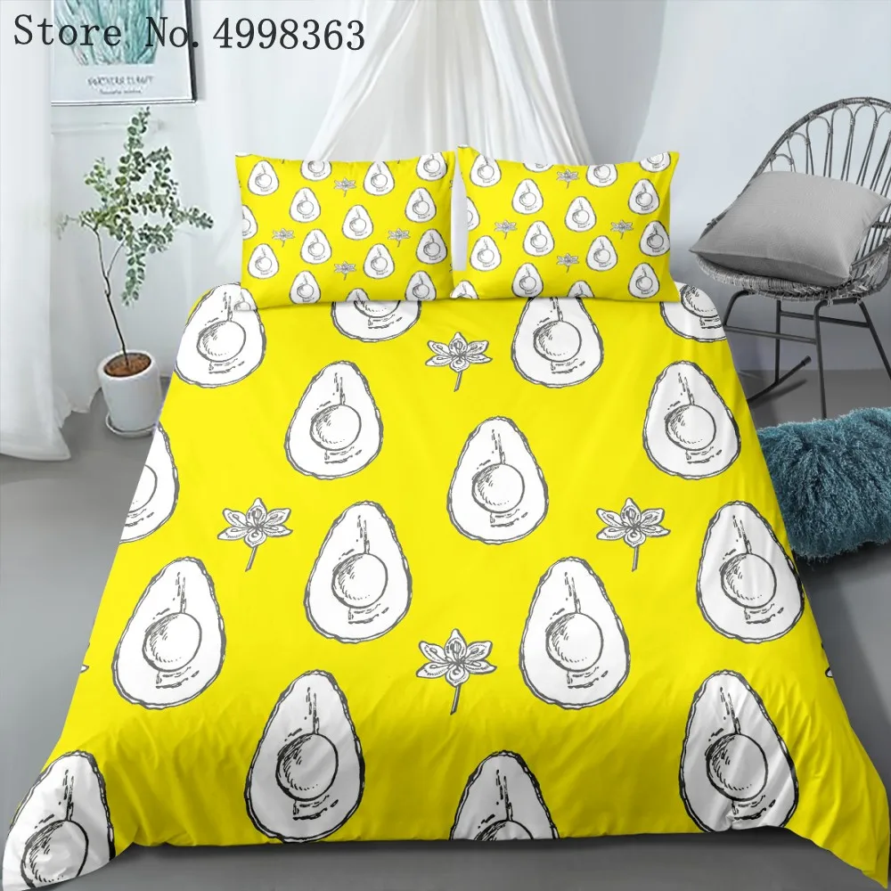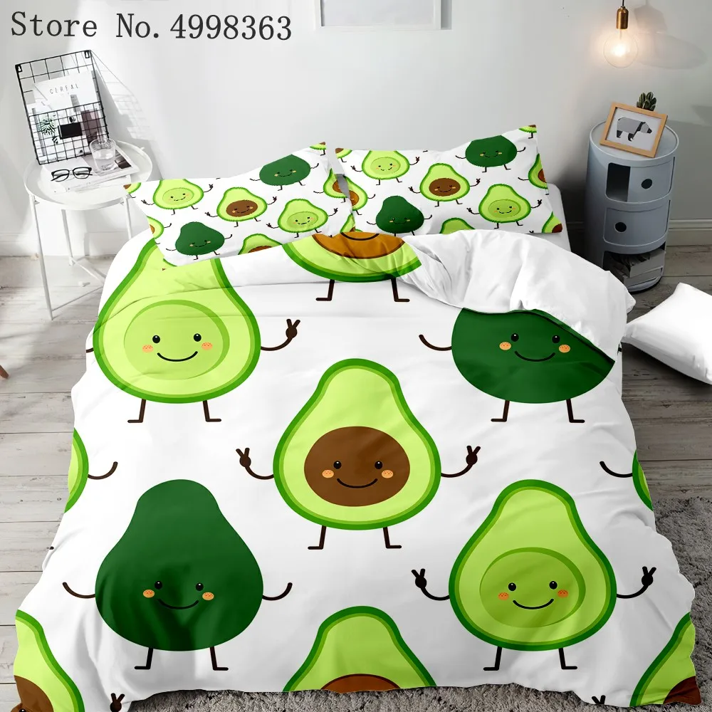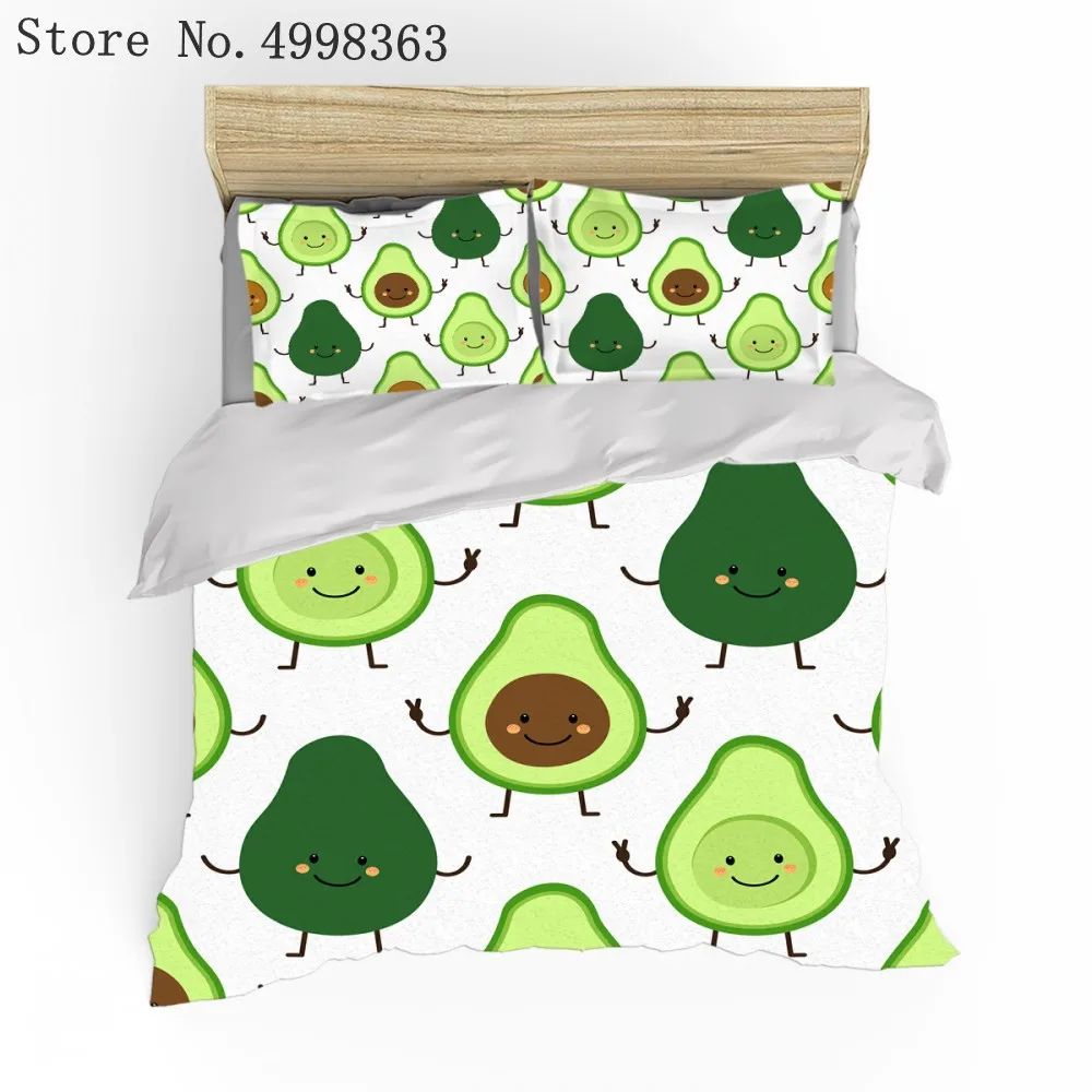 Для девочек, набор постельного белья с тропическими фруктами кровать пододеяльник авокадо 2/3 шт. 3d печати пододеяльник с забавным мультипликационным принтом комплект постельного белья для спальни