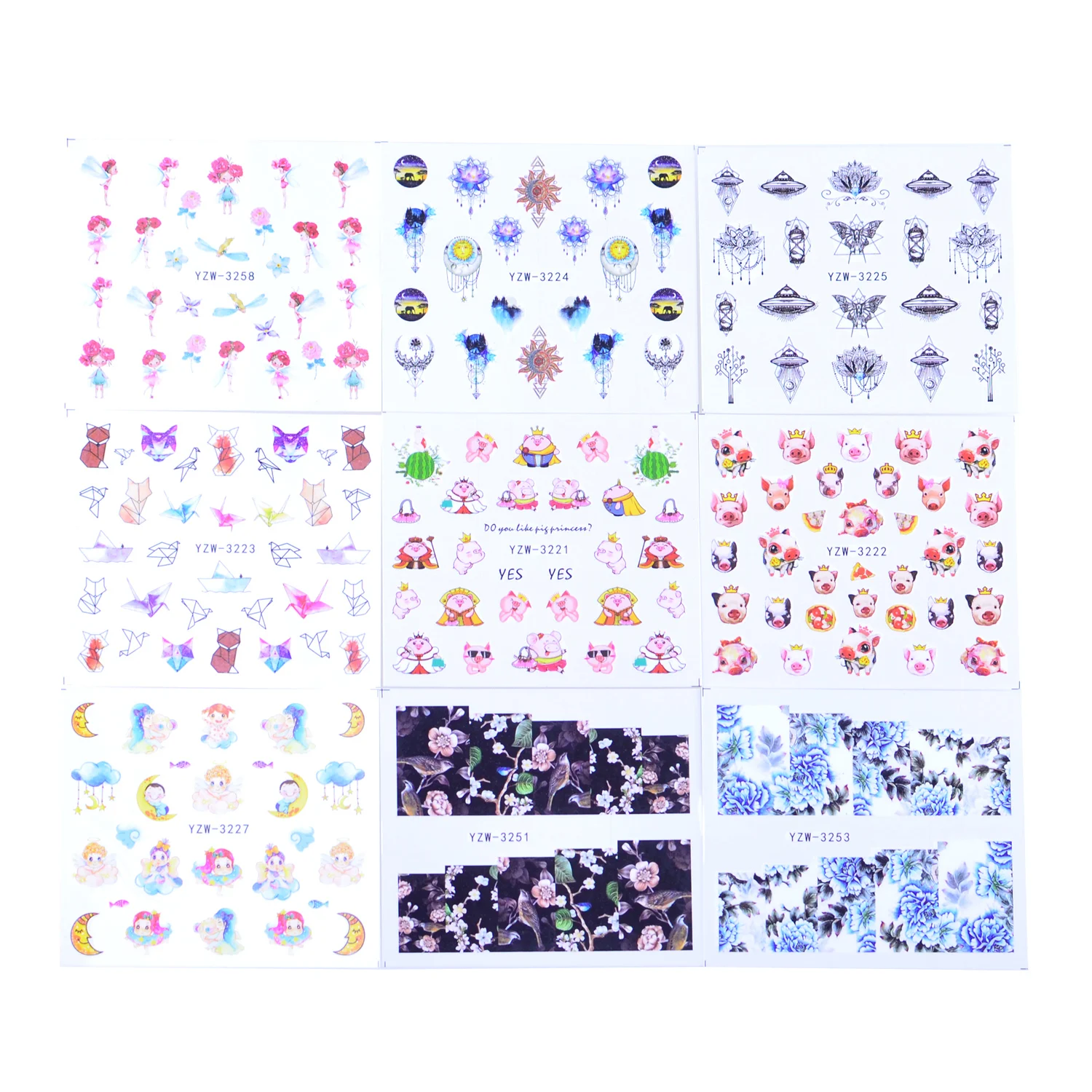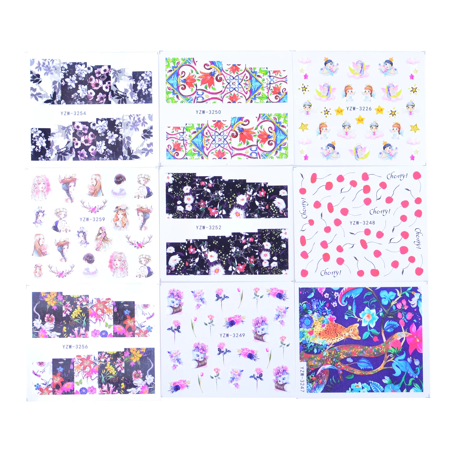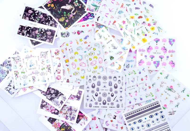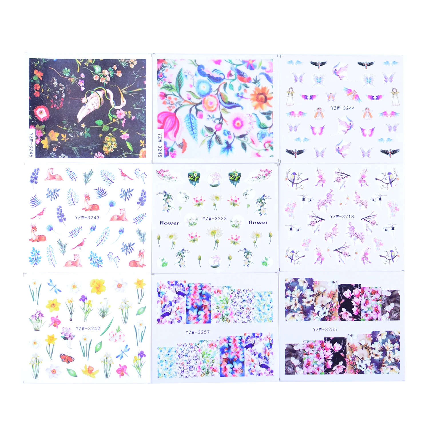 Переводные наклейки для ногтей, 48 шт., линейный цветочный узор, украшения для ногтей, слайдер для ногтей, водяной знак, маникюр фольги