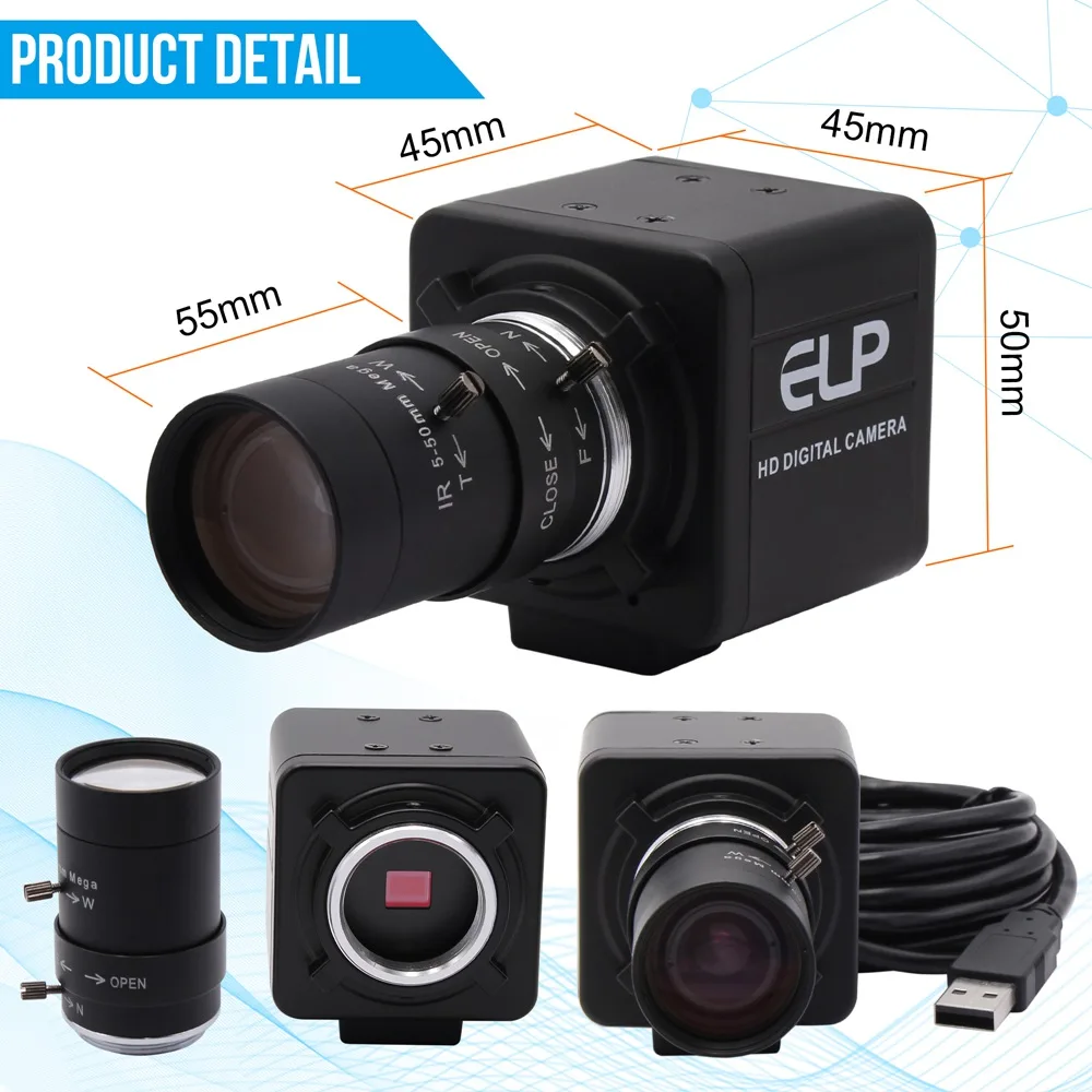 Камера ELP HD 13 МП с изменяемым фокусным расстоянием 5-50 мм, мини веб-камера UVC для ПК, Android, Linux, Windows, USB, SONY IMX214