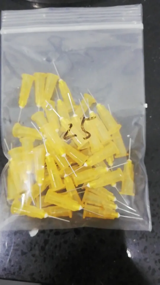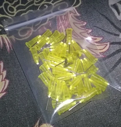 Спасибо продавцу. Конечно доставка заняла больше двух месяцев, но это Почта России виновата. Да ещё и на новогодние выпала доставка. А продавец отправил быстро, до России дошло тоже быстро. В пакетике оказалось 55 иголок. На любой медицинский шприц надеваются без проблем. По сути это и есть медицинские иглы, только короткие. Даже по международной цветовой маркировке совпадают. Пришли точно такие как заказывал. Самые толстые 14g. Кстати в продаже в нашей местности я найти такие толстые нигде не смог. Максимум были 17g в ветеринарной аптеке. Пять звёзд продавцу.