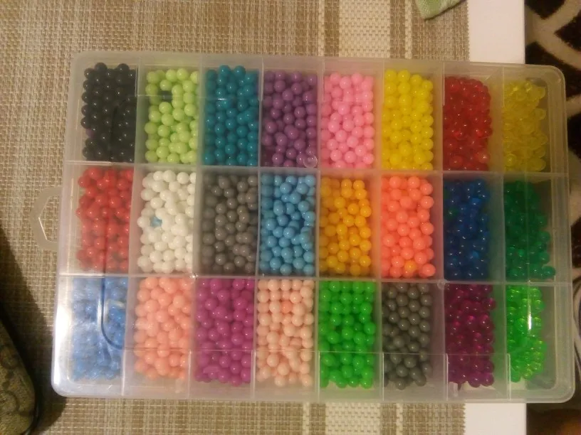 Отлично с продуктом! Супер разнообразные, яркие и яркие цветные шарики, которые идентичны описанию и фотографиям продавца. Они адаптируются к шаблону моего ребенка в аквабедах. Когда мой сын покажет это, он будет кричать, и мы будем весело провести время. Он также поставляется, как и обещал, с растворителем с образцами, чтобы сделать мега крутые рисунки динозавров, персонажей Диснея и другими статуэтками, которые любят дети дома. Я рекомендую товар и продавца, они не пожалеют!