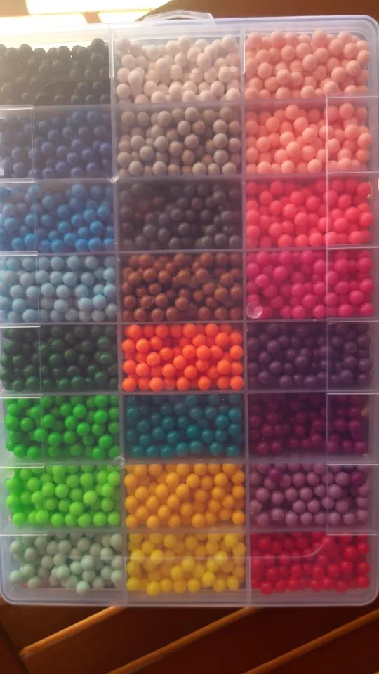 отличные бусины, берем уже второй раз, клеятся нормально (оригинал мне кажется более пластичный чуток) , диаметр подходит для аквабитс. пересчитывать конечно не пересчитывала, но явно выгоднее оригинала и не жалко. На фото алмазные бусины оригинал, остальные из набора. пора алмазные тоже продавать, не хватает их. разнообразие цветов радует