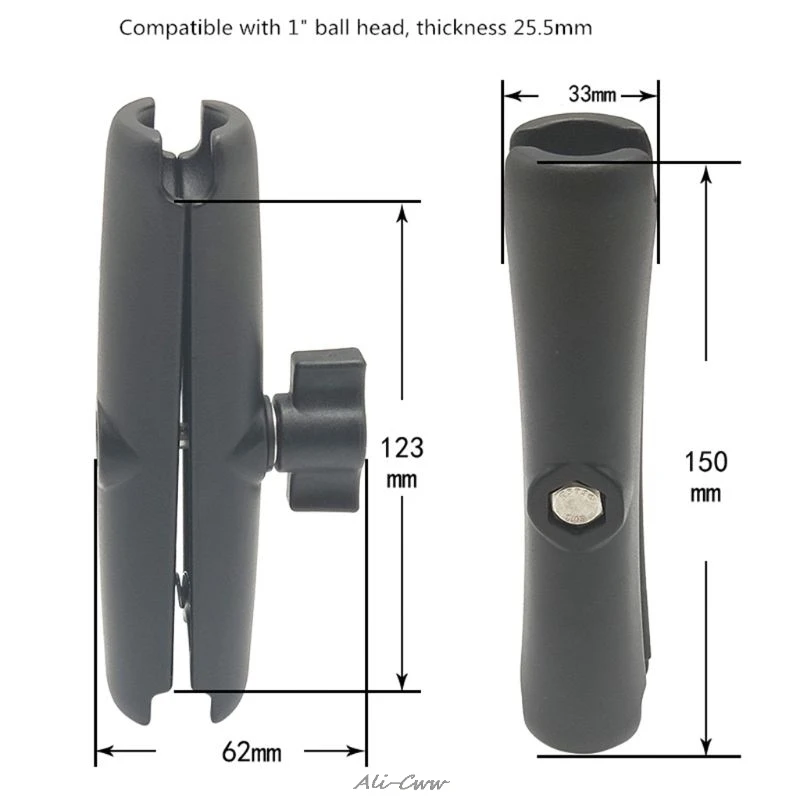 15 см длина алюминиевый сплав двойная розетка для RAM с 1 дюймовым шаровым основанием крепление для камеры мотоцикла удлинитель
