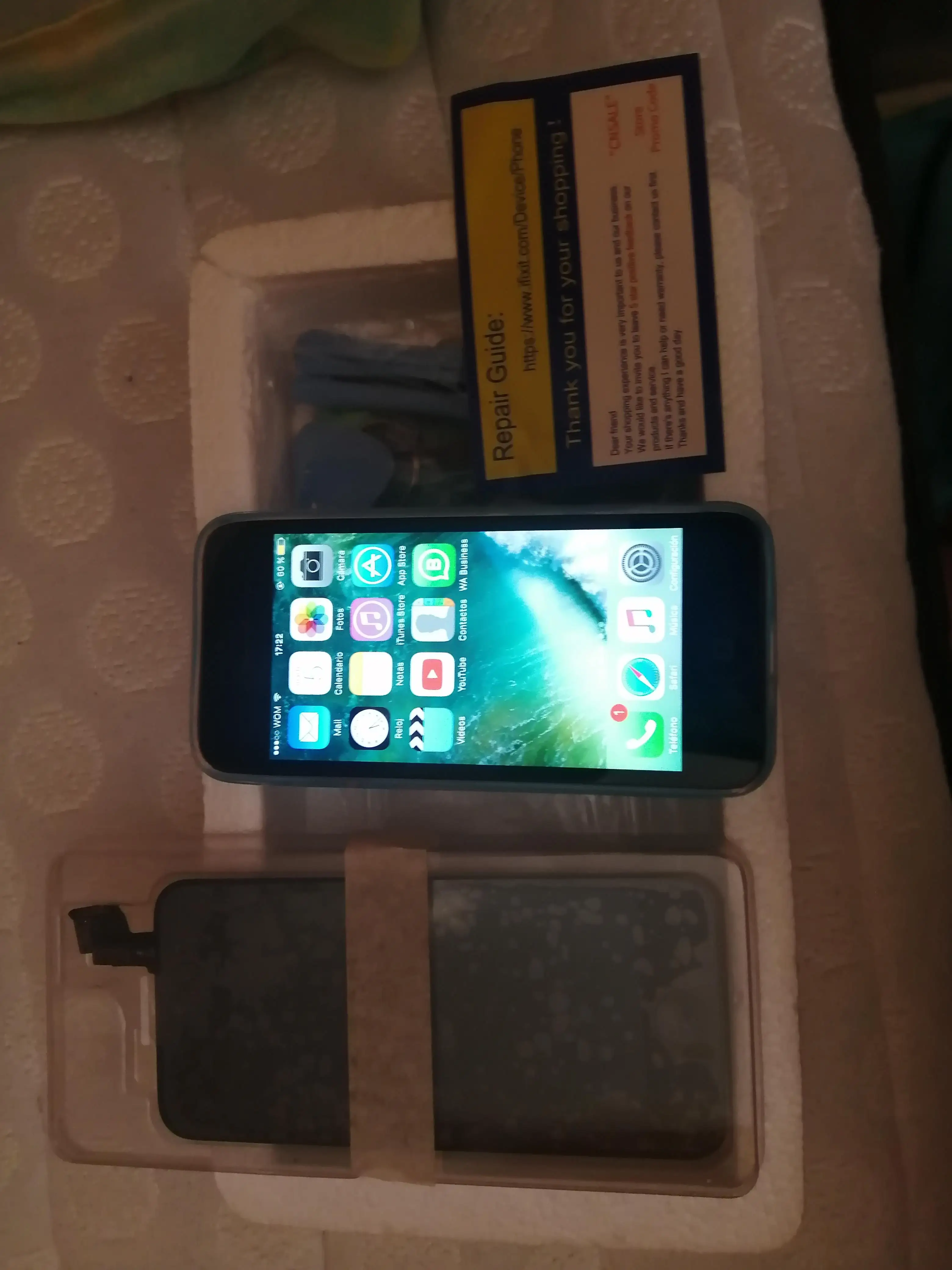 Удивлён))) Отличный экранчик уже со всем навесным ( динамик, тач-home ), по качеству и цветопередаче картинки не отличается от оригинального. Набор отвёрток, защитное стекло, мягкий силиконовый прозрачный чехол бонус от продавца. Легко установил, всё работает. Можно смело покупать. РЕКОМЕНДУЮ.