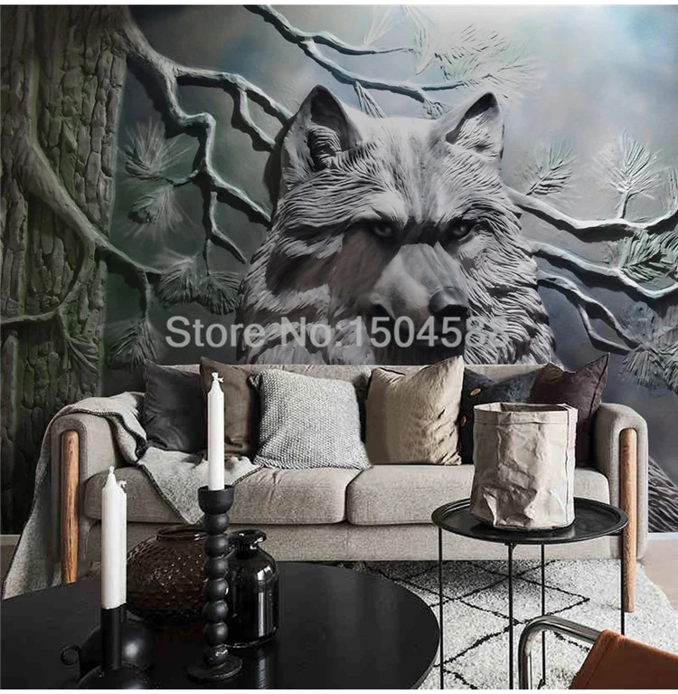 3D обои Европейский стиль стерео рельеф лес волк фото настенные фрески гостиная столовая креативное искусство обои фрески