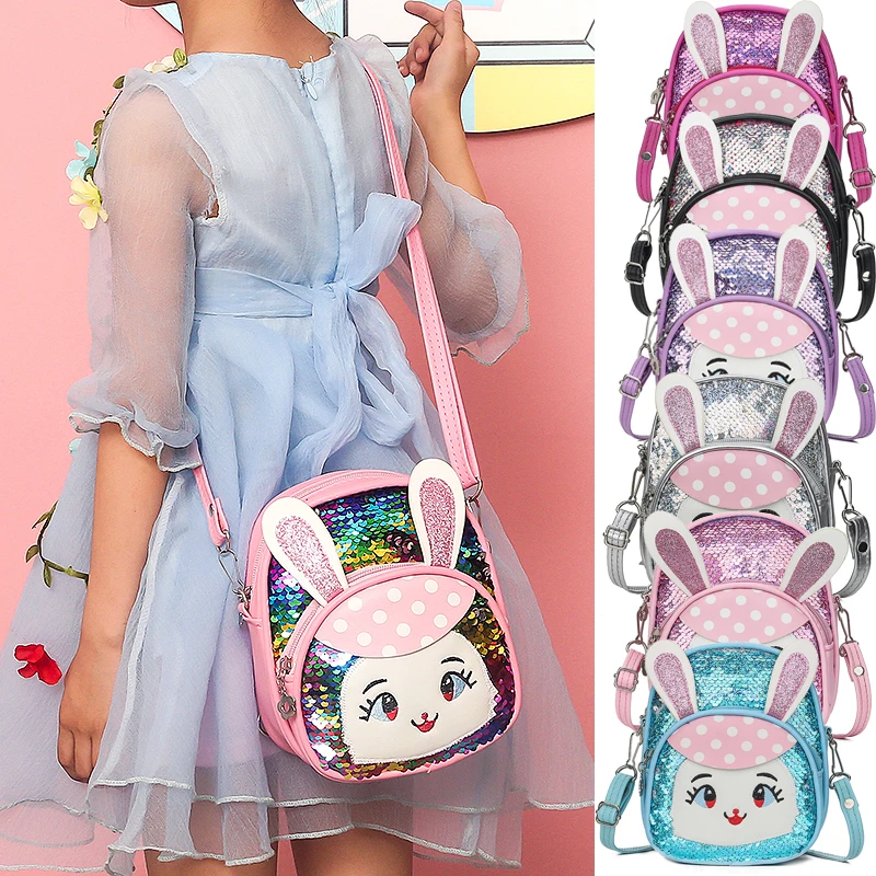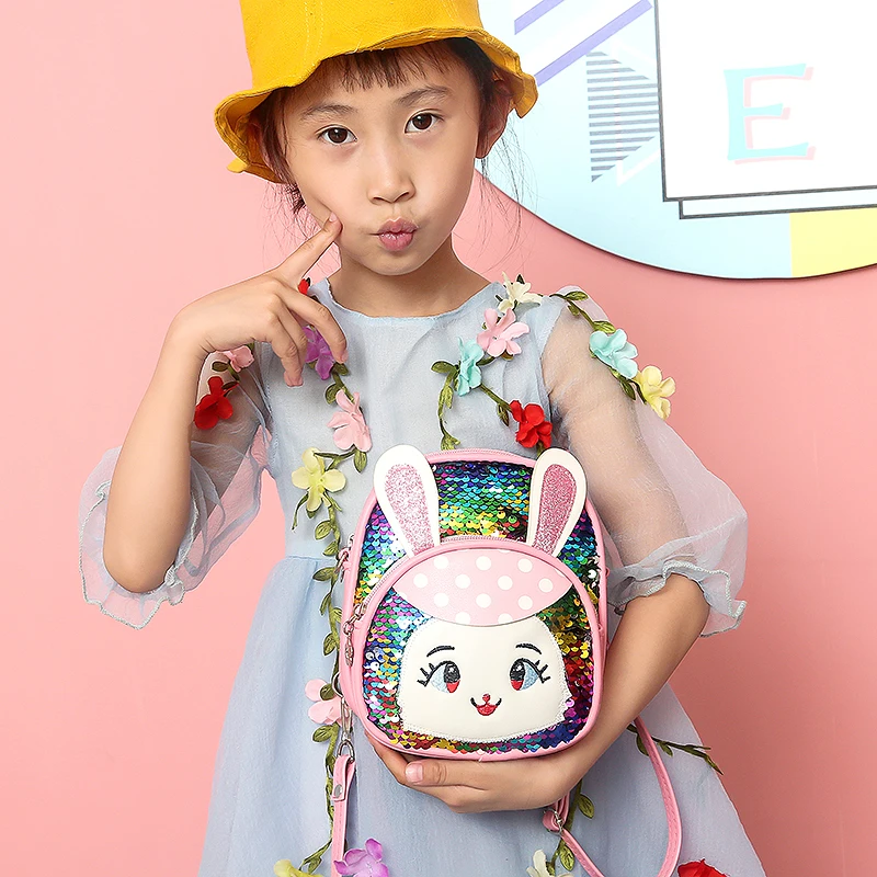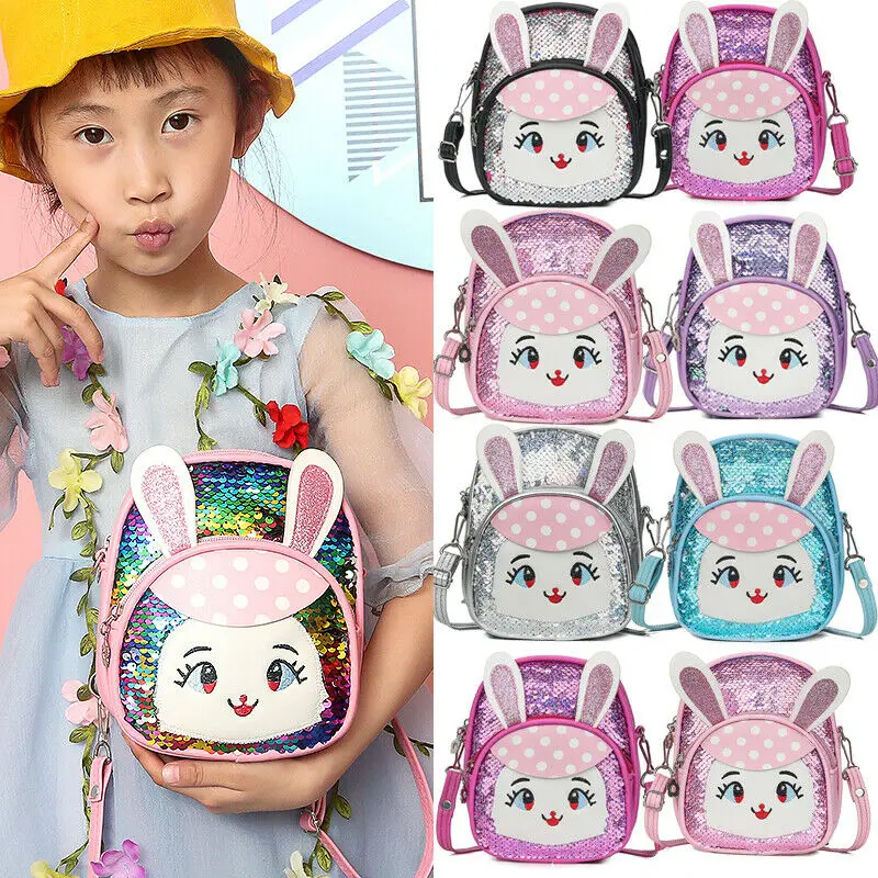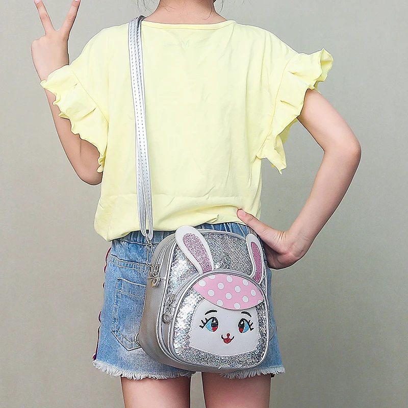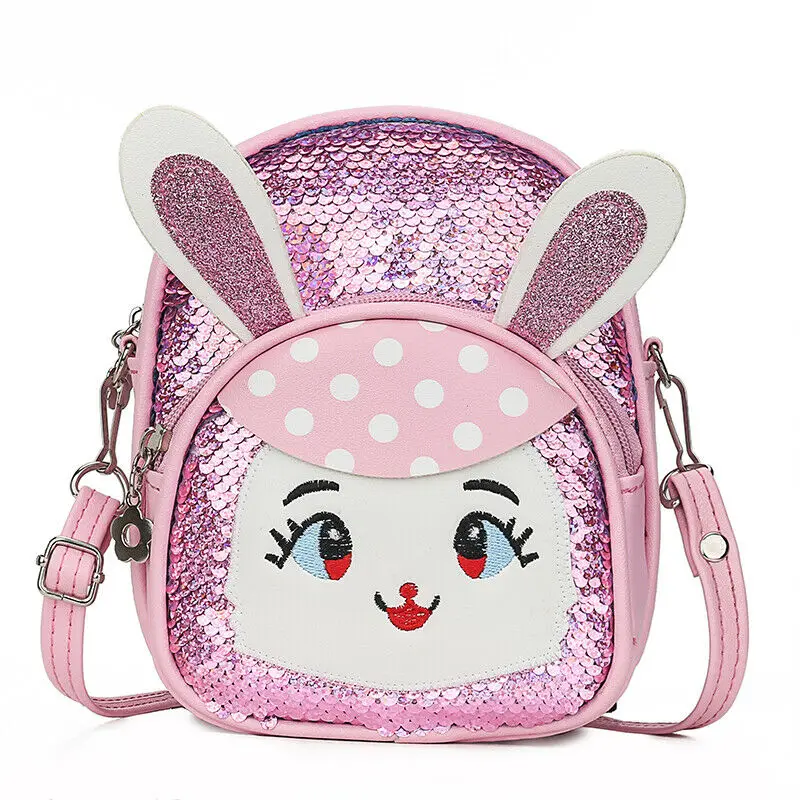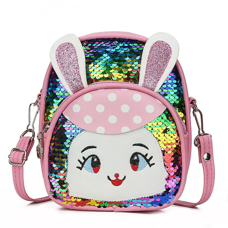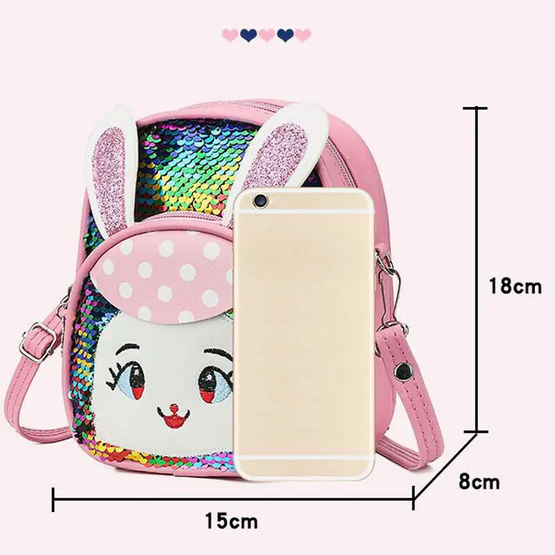 Милая детская школьная сумка с блестками, мультяшный кролик, рюкзак для девочек, модная блестящая мини-сумка на плечо