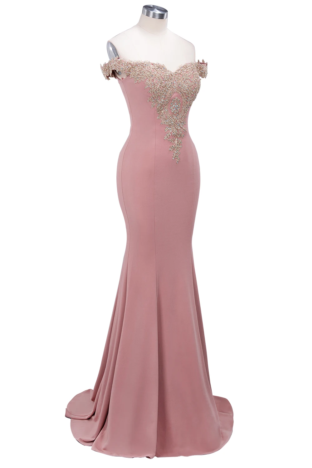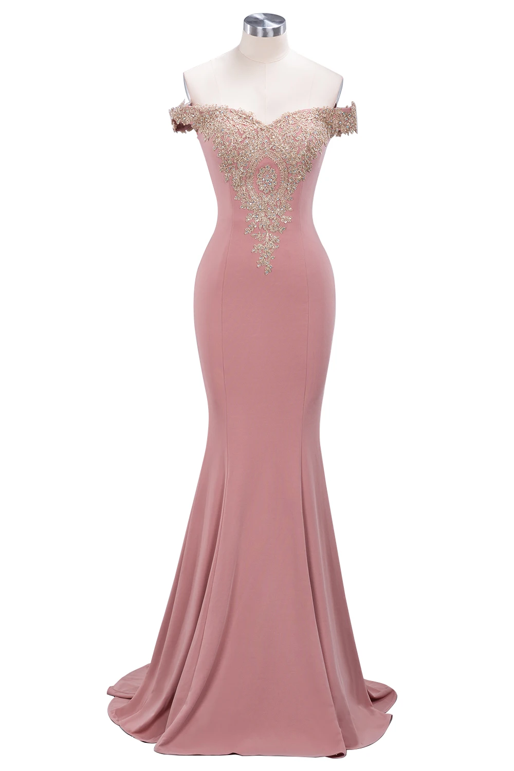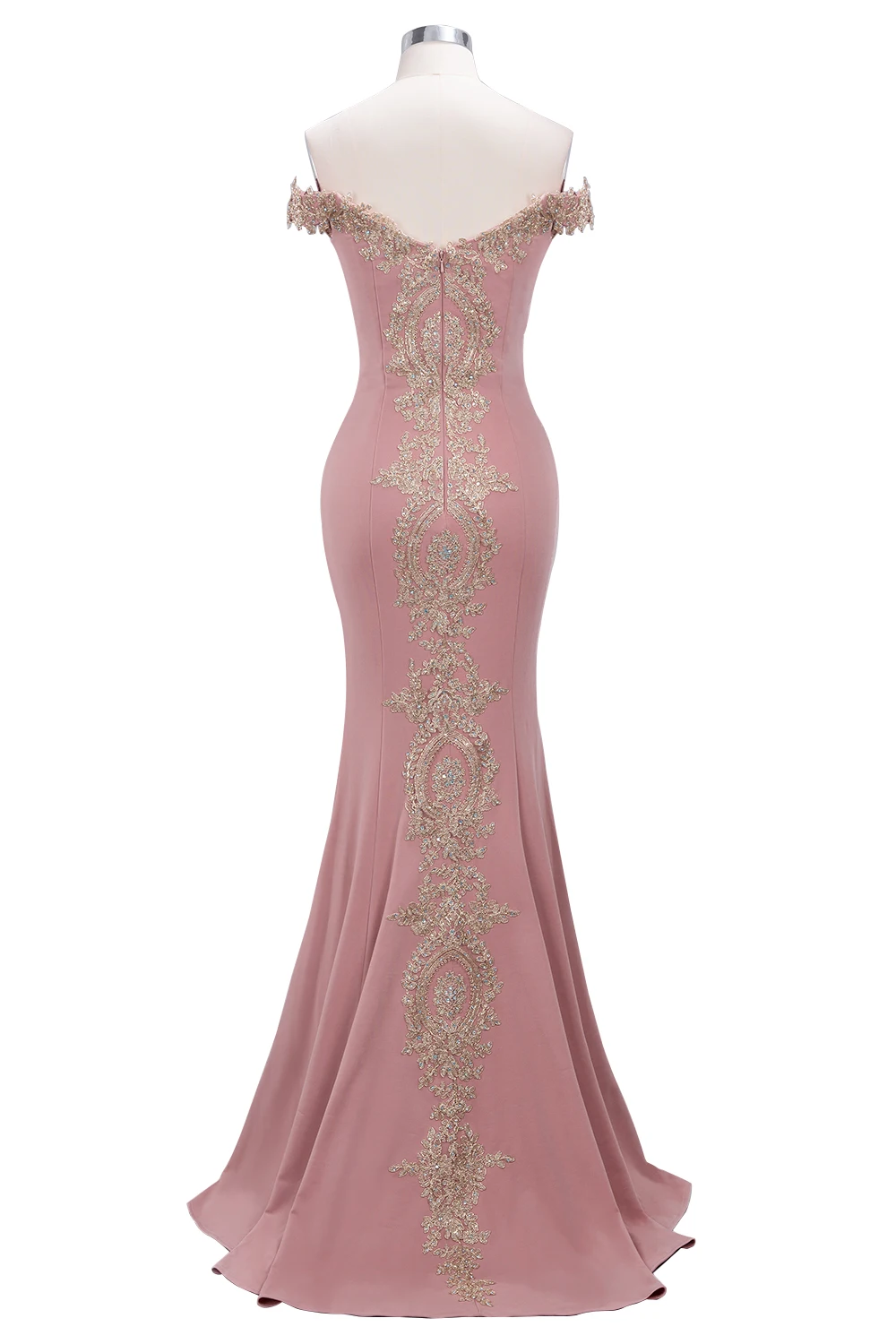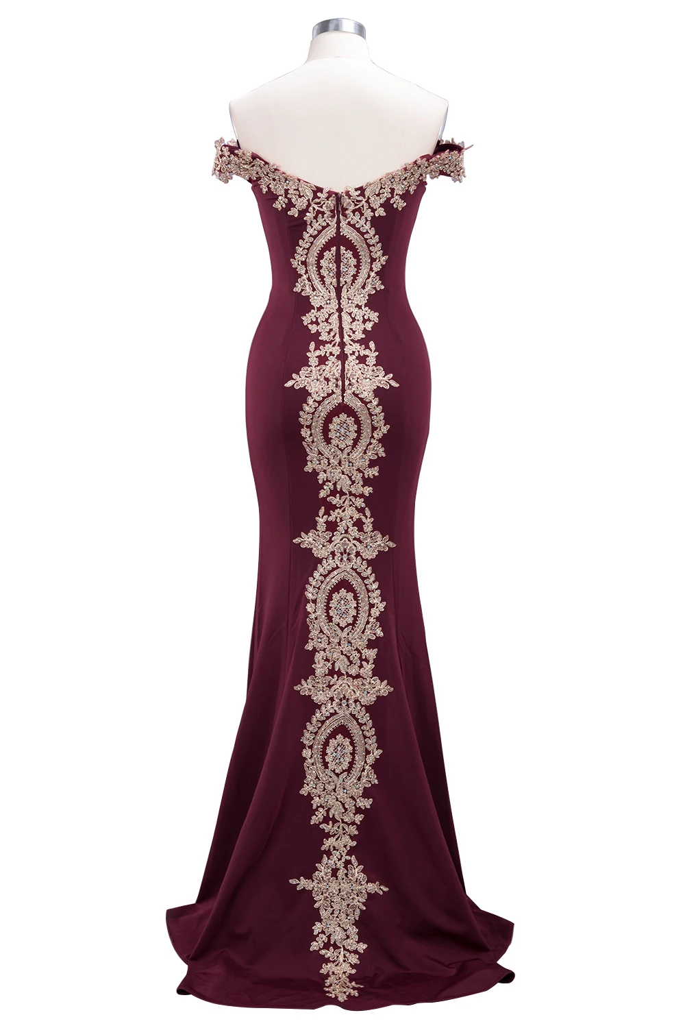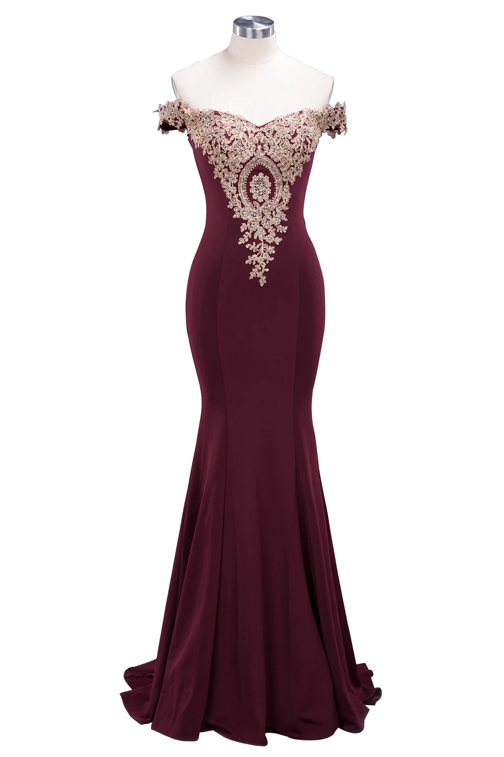 Длинное Элегантное платье-Русалка с открытыми плечами без рукавов с золотой аппликацией, платья для торжества