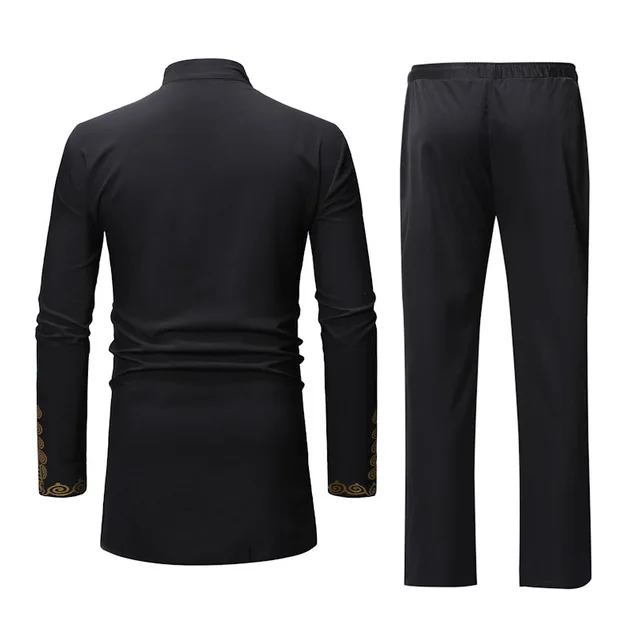 Мусульманский черный Африканский Дашики Мужской комплект из 2 предм...